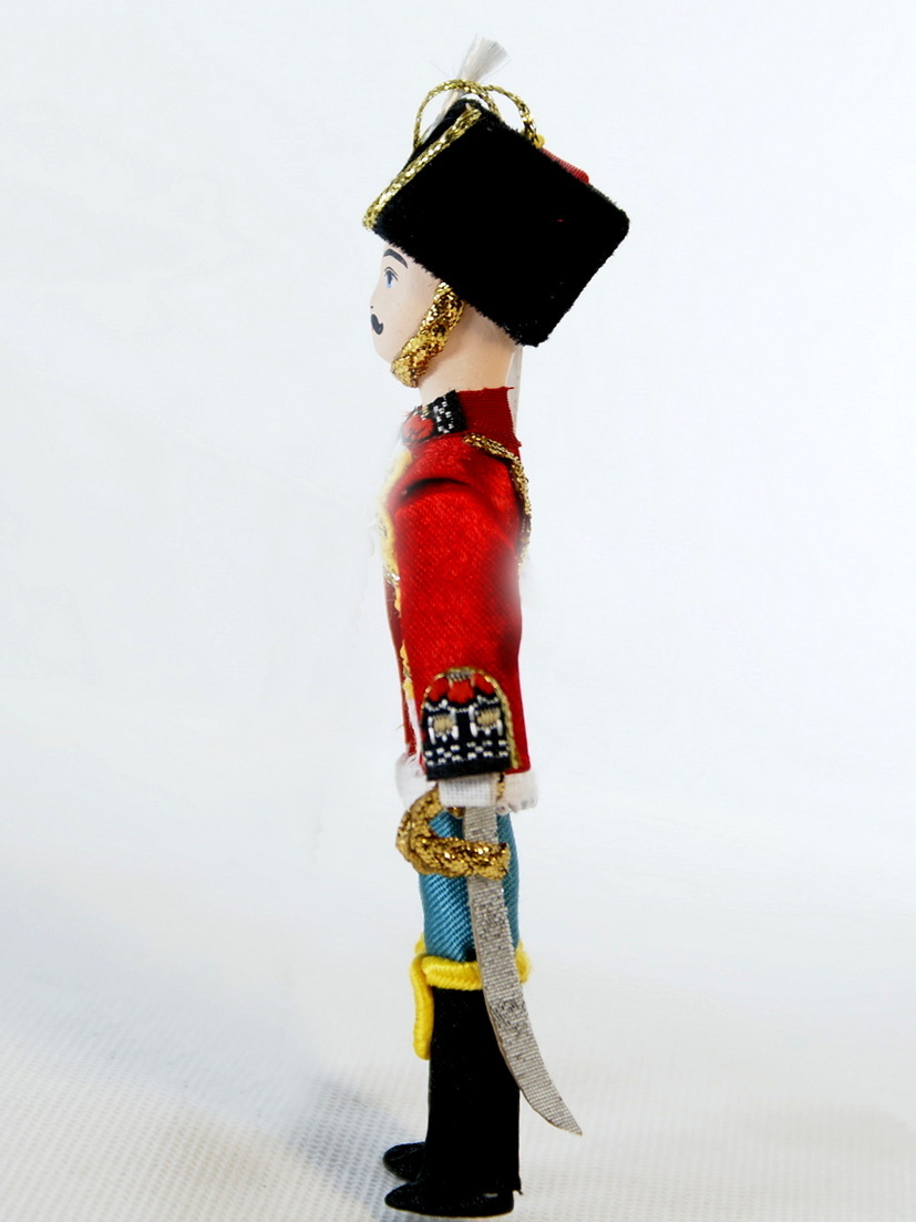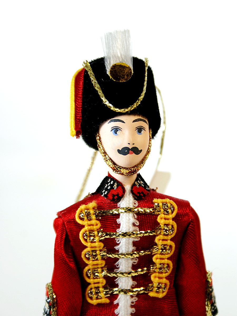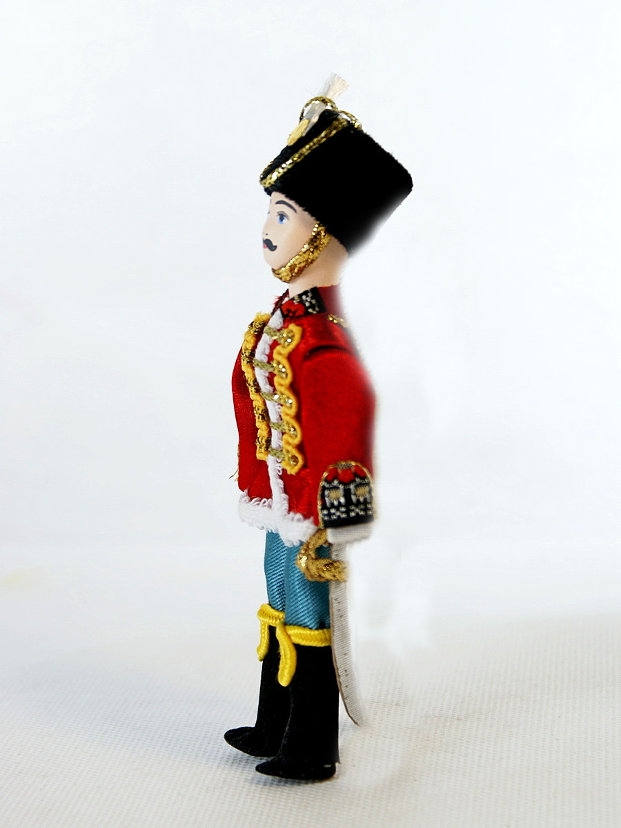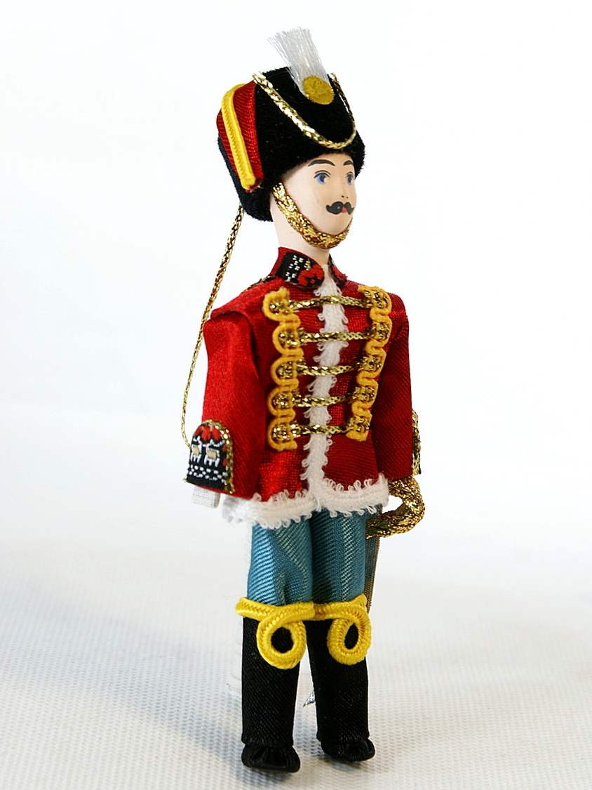 Кукла-подвеска Потешного промысла Лейб-гусар. Начало 19 века. Россия. Материал фарфор, текстиль. Высота 13 см. Артикул 0332.