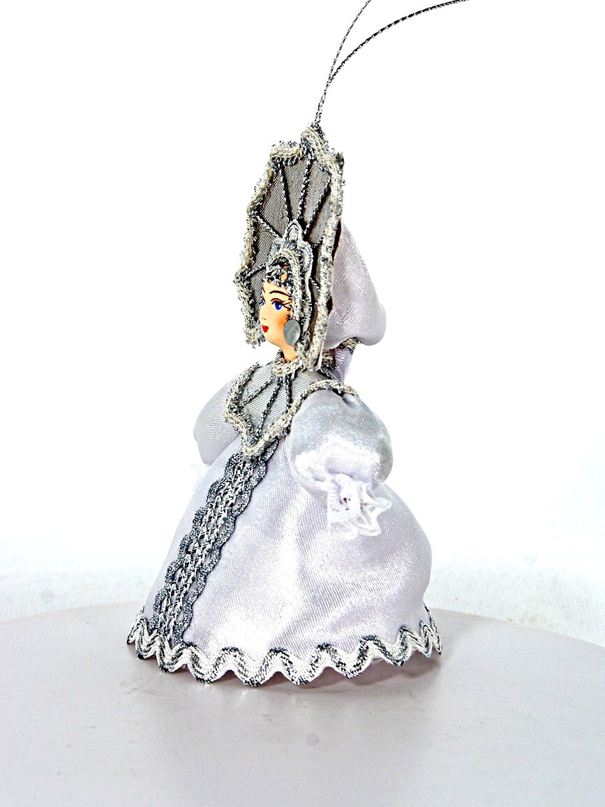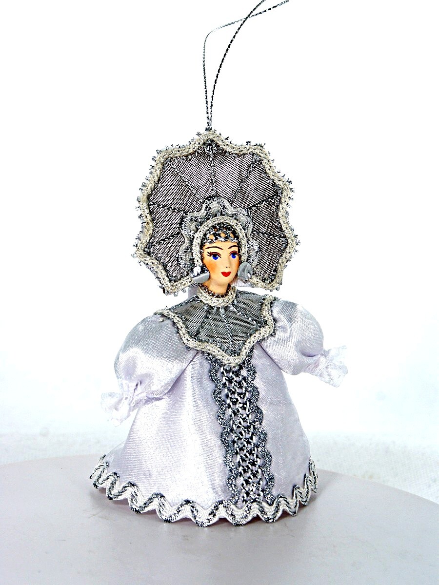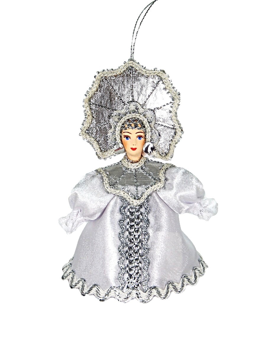 Кукла-подвеска Потешного промысла Снежинка. Сказочный персонаж. Фарфор, текстиль. Высота 12 см. Артикул 0962.