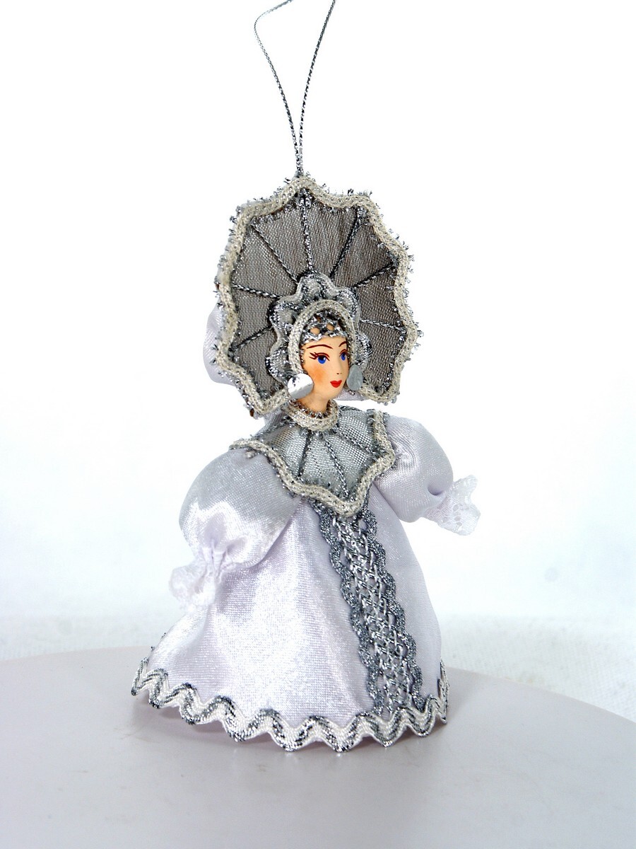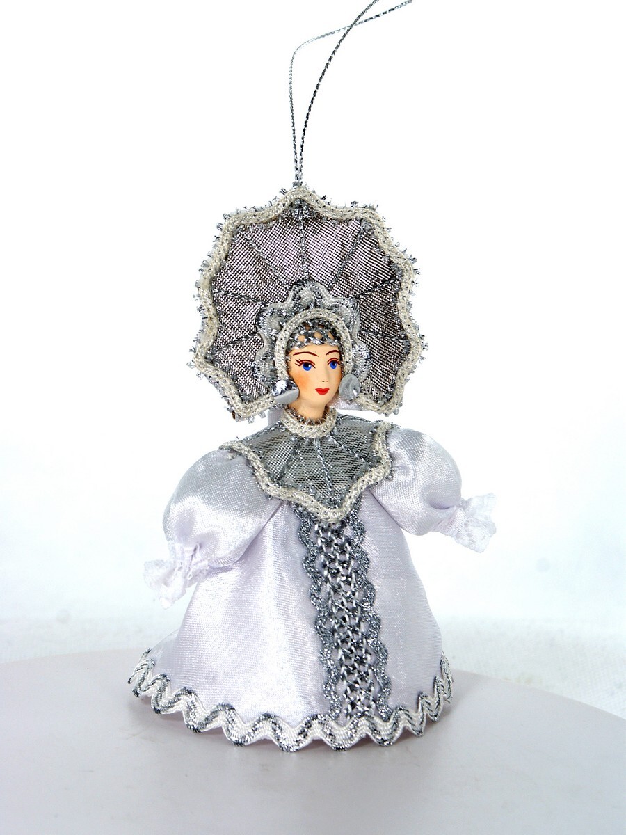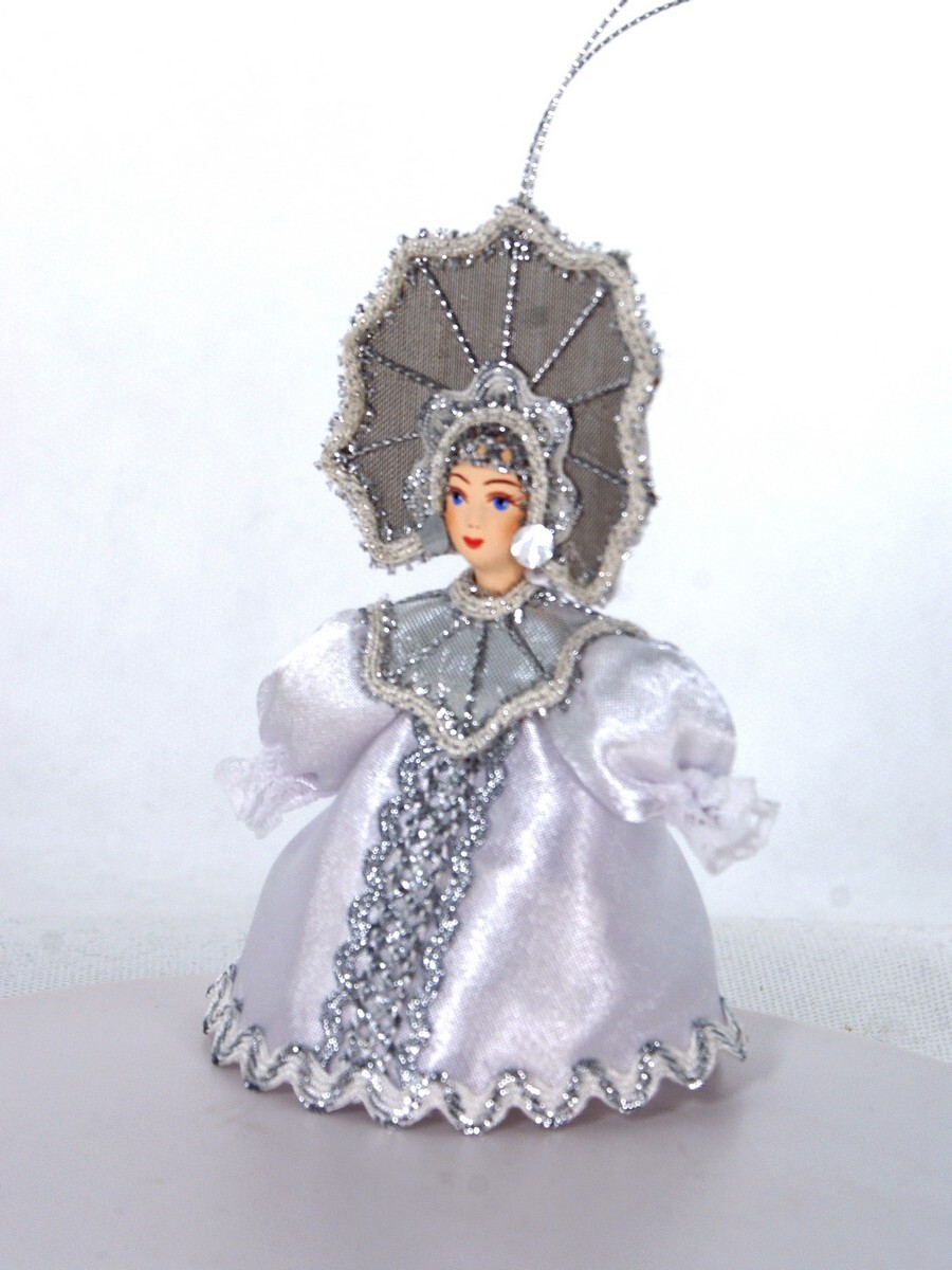 Кукла фарфоровая елочная игрушка Снежинка. Сказочный персонаж. Артикул 0962.