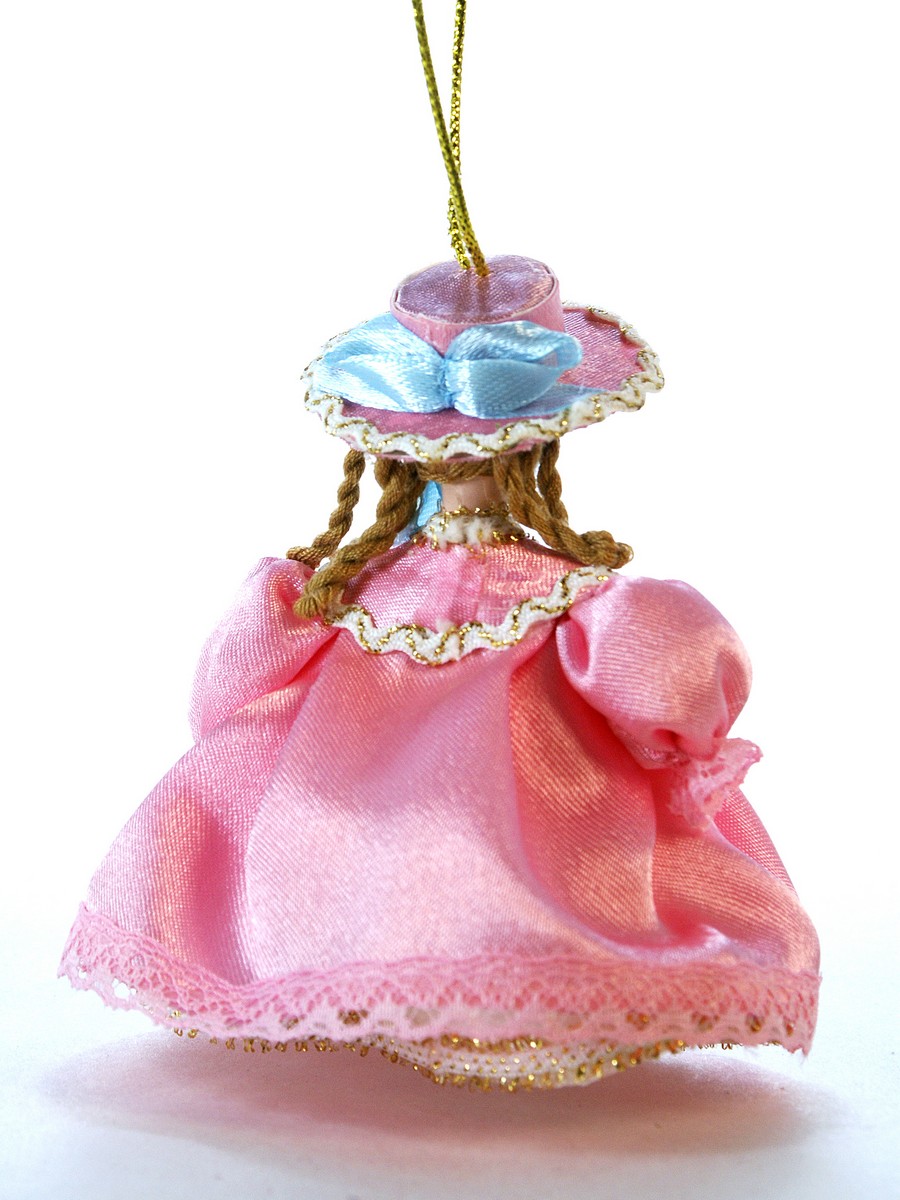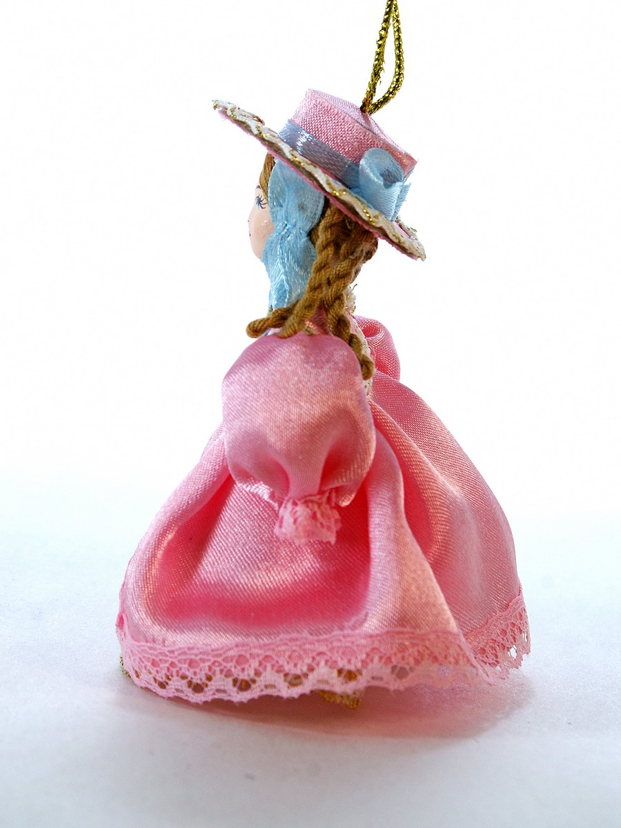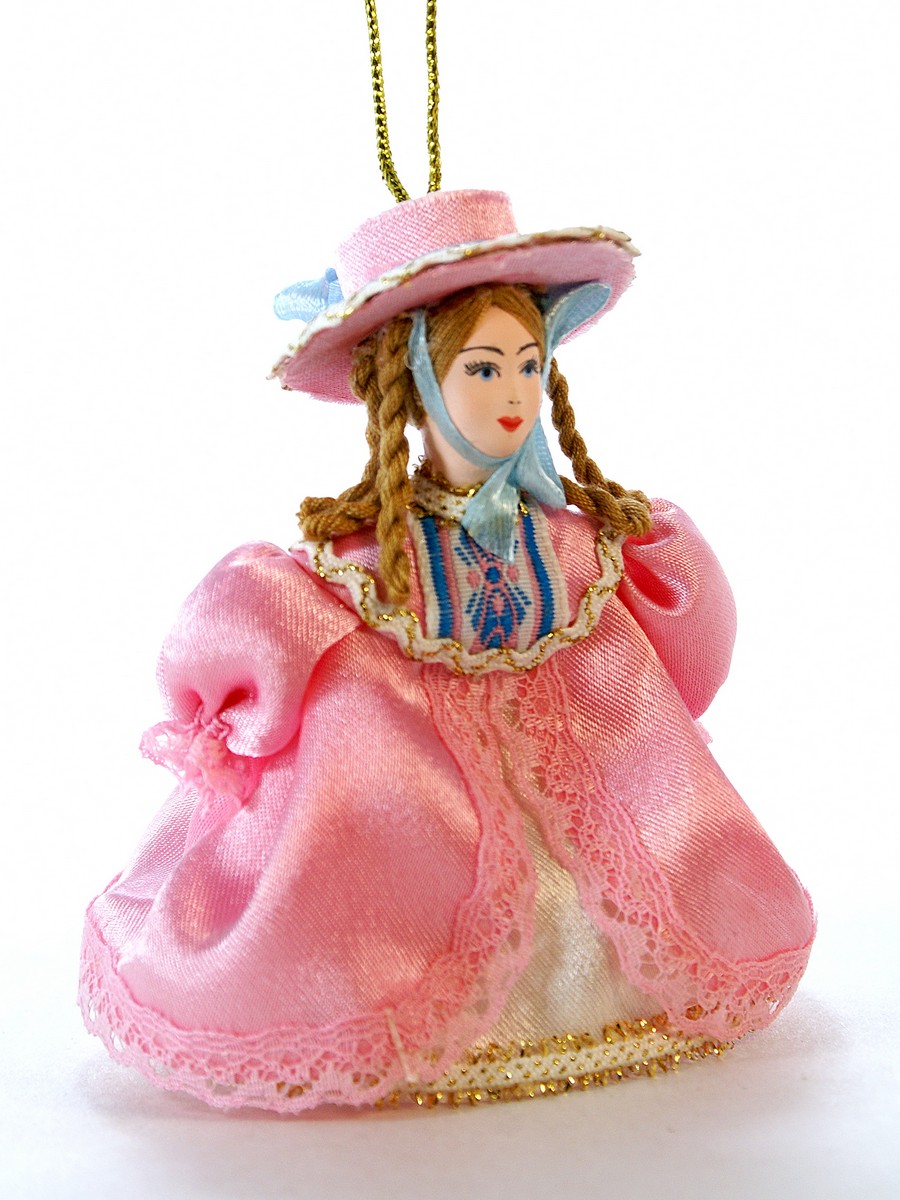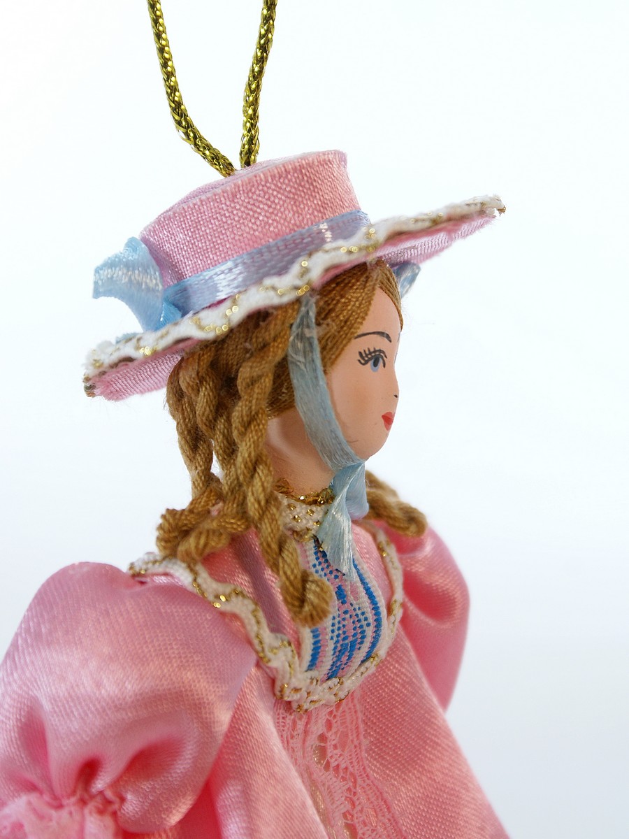 Кукла-подвеска сувенирная Потешного промысла Барышня в шляпке 19 века. Материал фарфор, текстиль. Высота 12 см. Артикул 0228.
