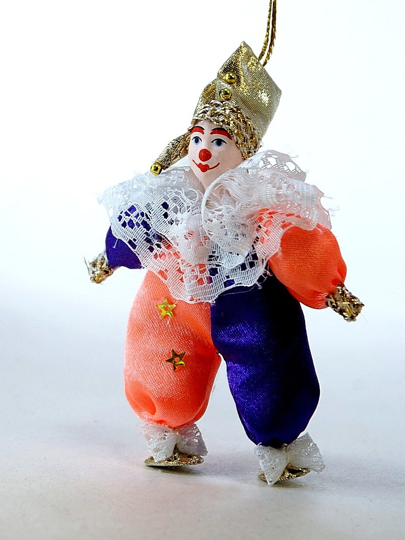 Кукла-подвеска Потешного промысла «Клоун Рыжий». материал фарфор, текстиль. Высота 13 см. Артикул 1317.