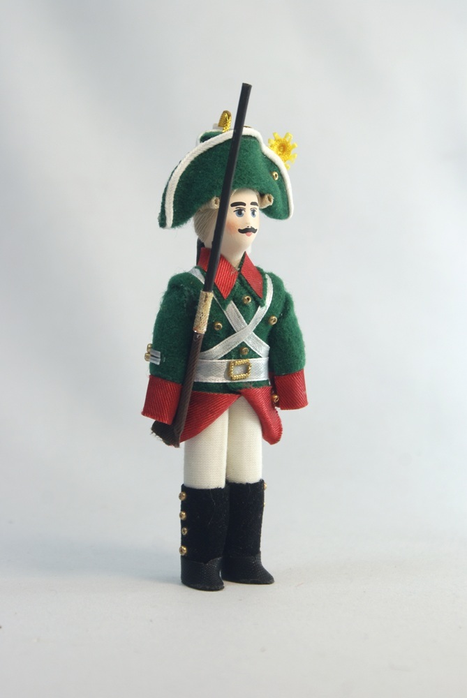 Кукла-подвеска сувенирная фарфоровая. Россия. Рядовой мушкетерского полка. 1797-1801 гг.