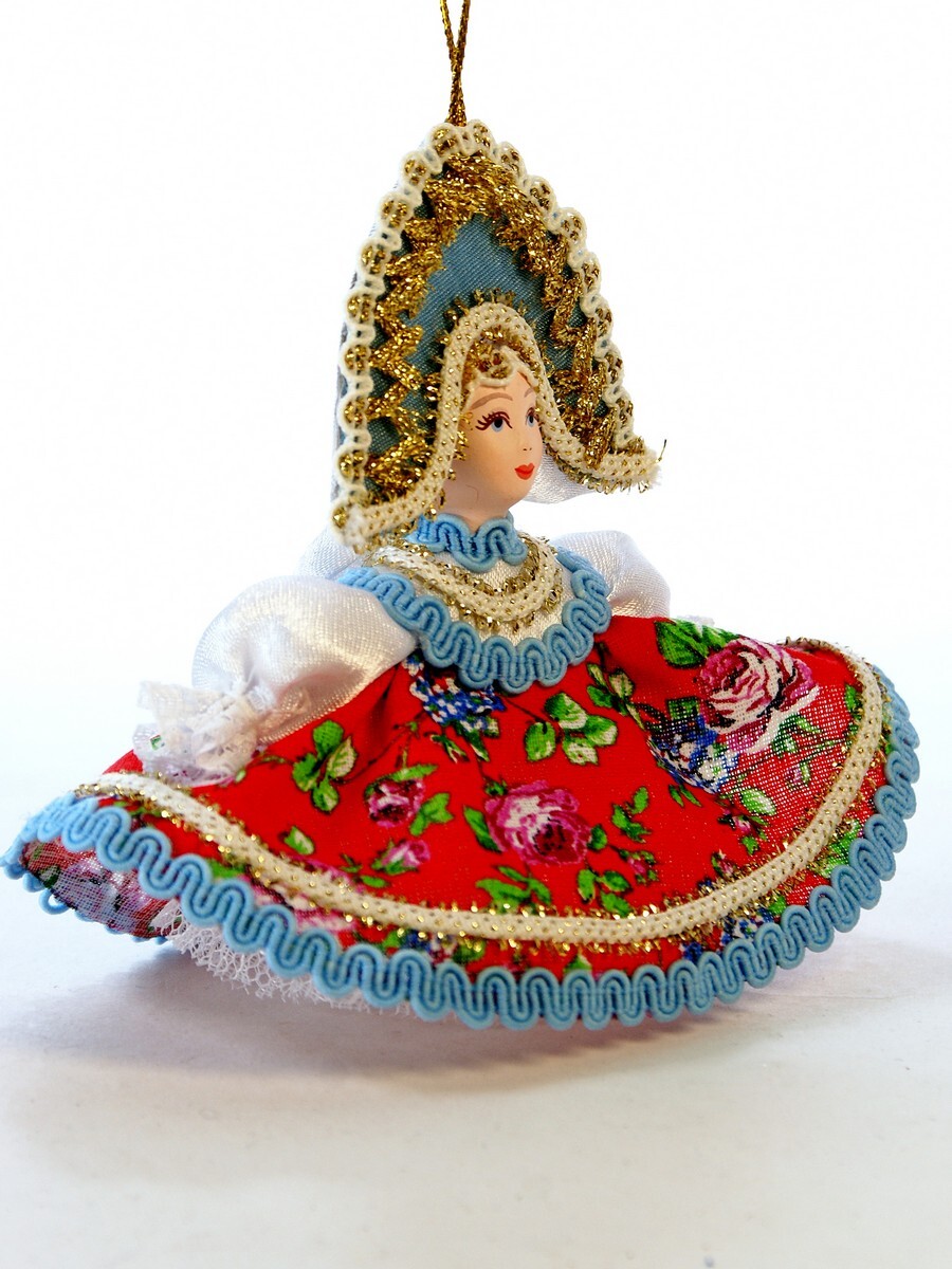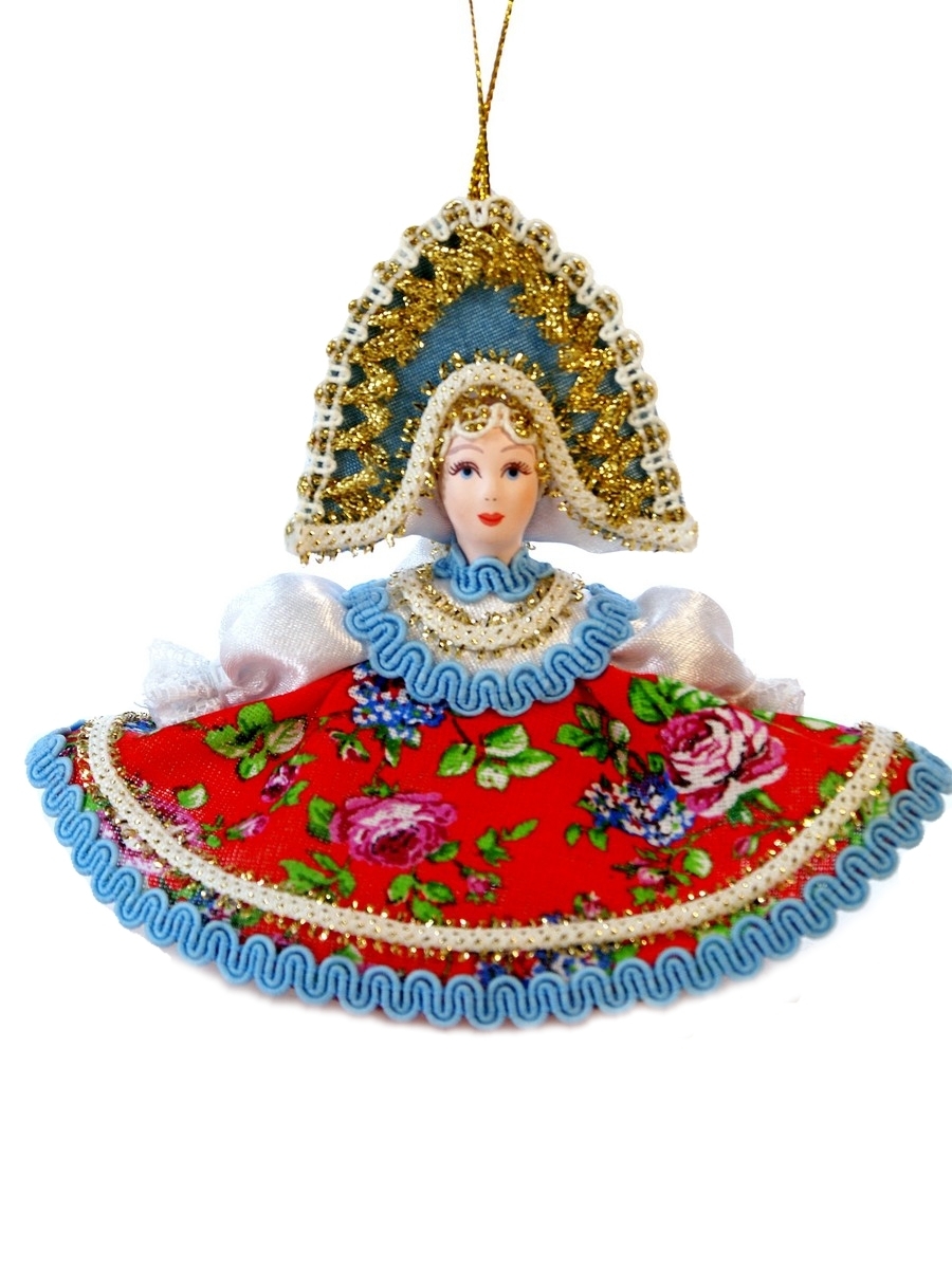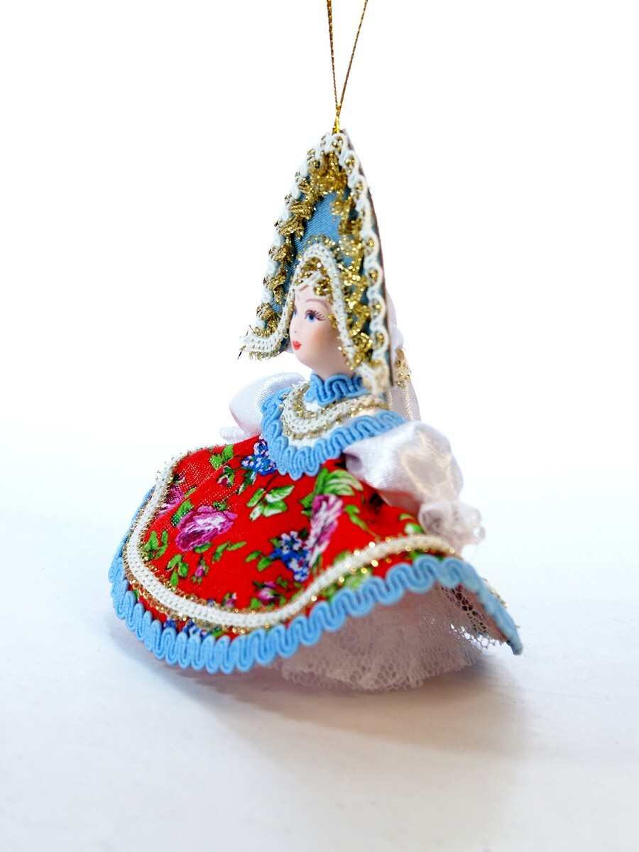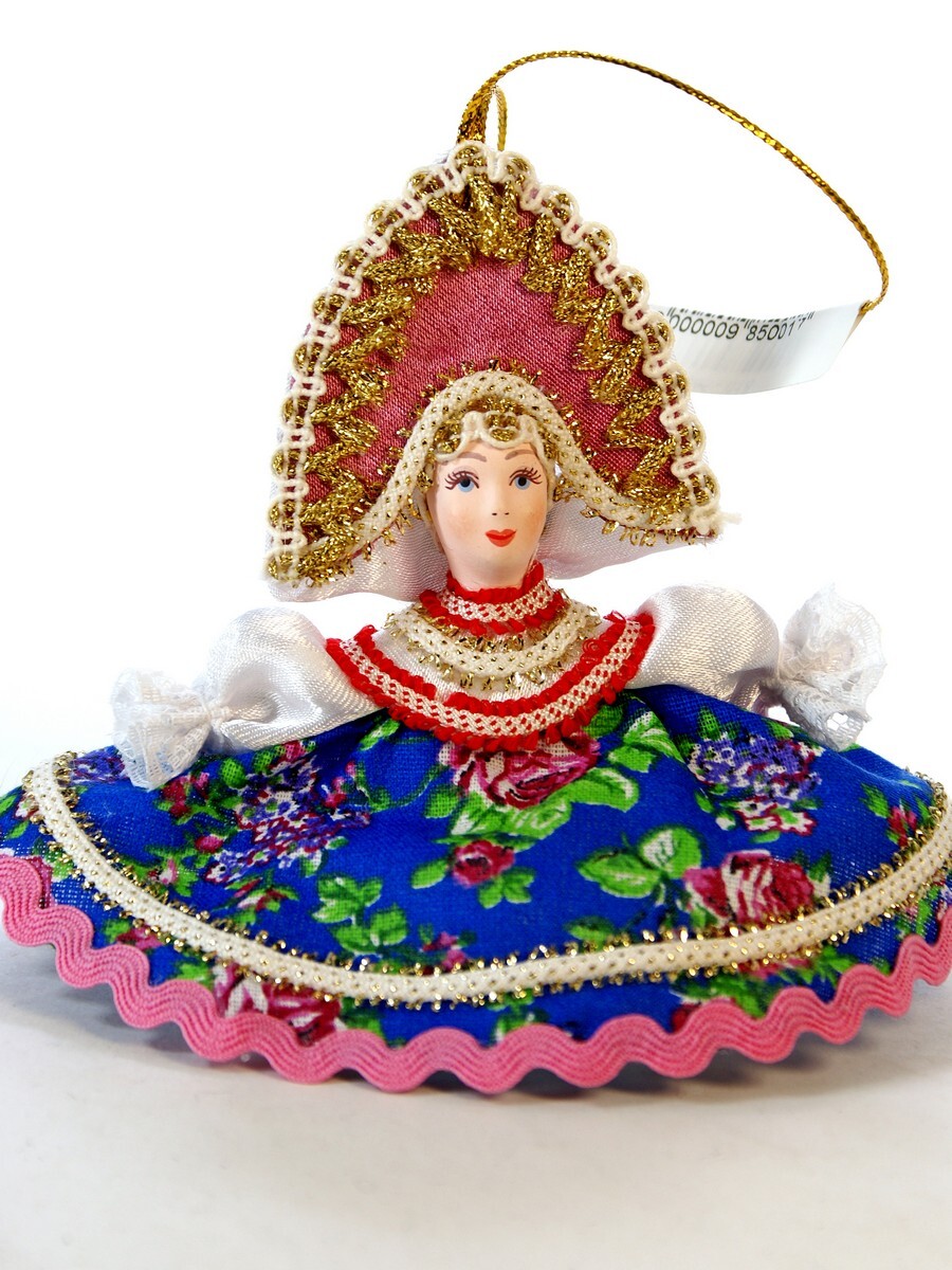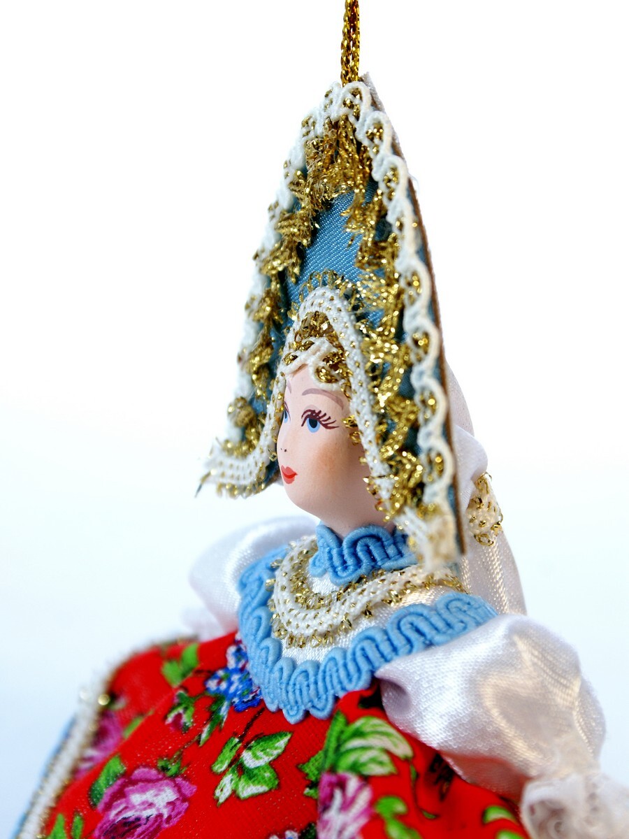 Кукла-подвеска сувенирная Потешного промысла Плясунья. Материал фарфор, текстиль. Высота 13 см. Артикул 0985.