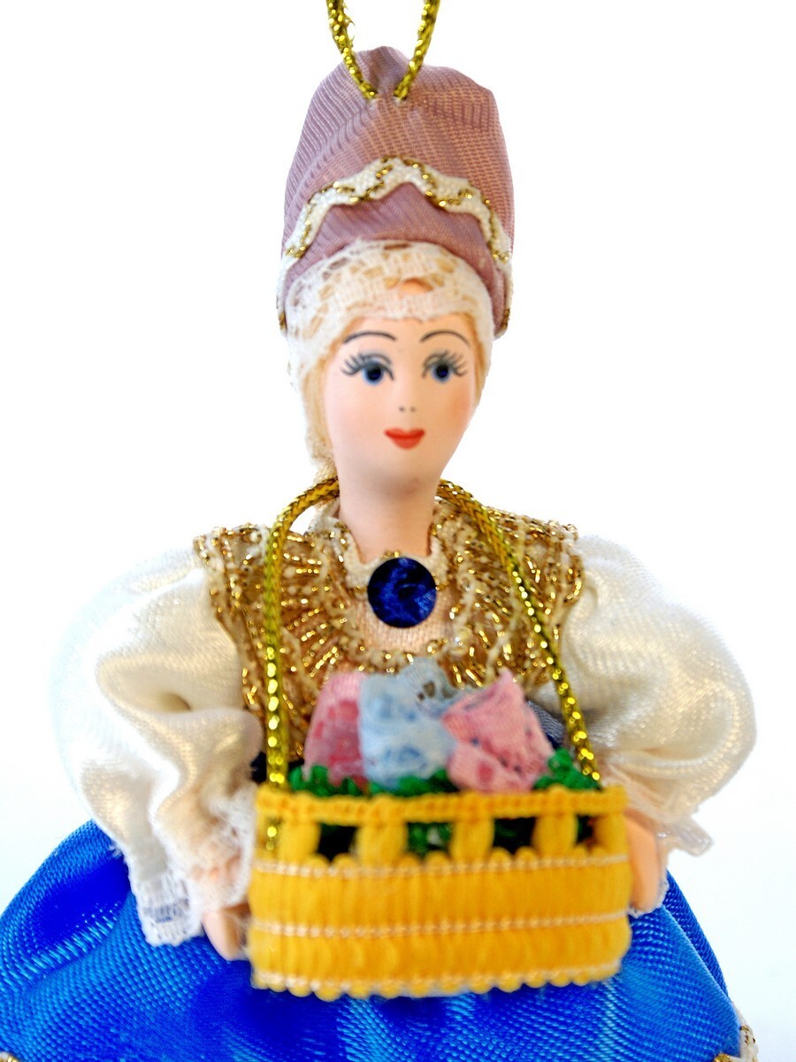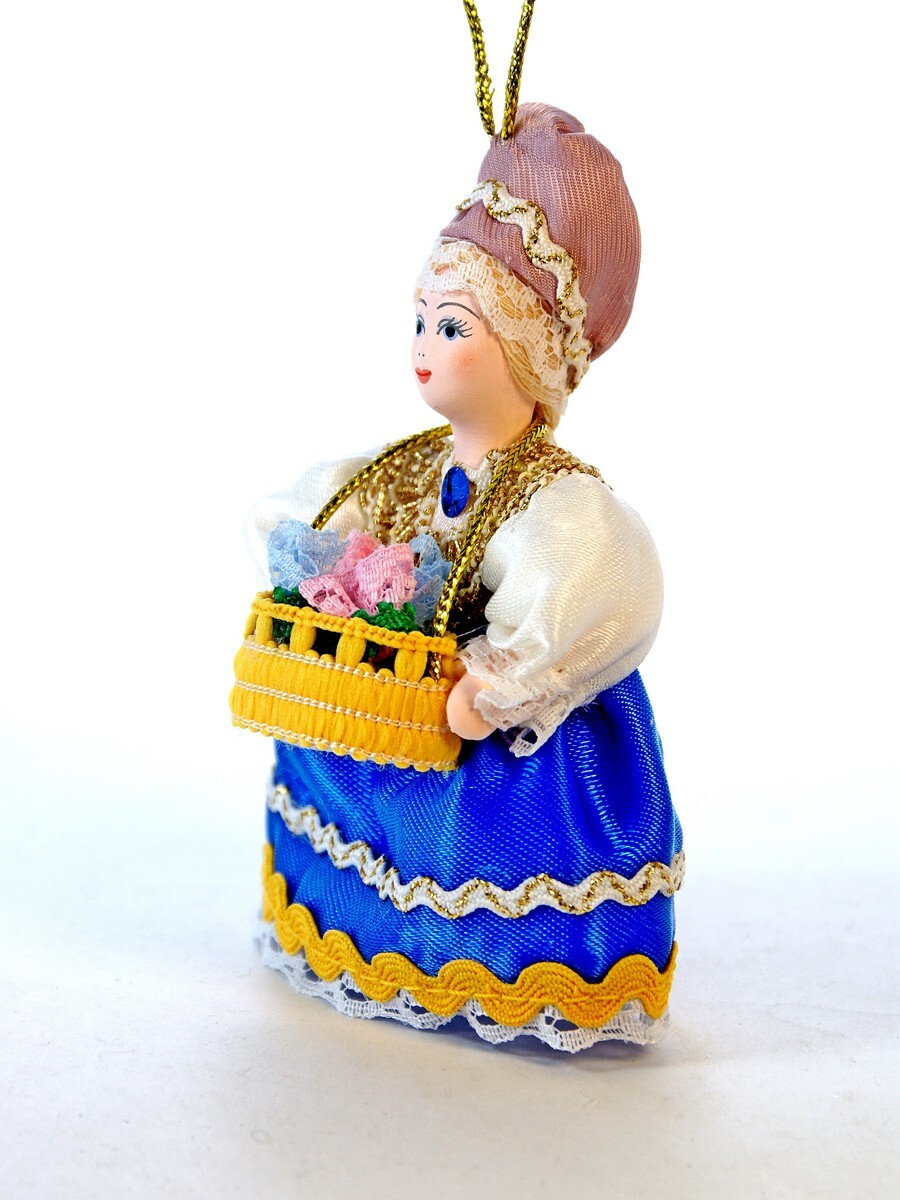 Кукла-подвеска Потешного промысла Цветочница. Материал фарфор, текстиль. Высота 11 см. Артикул 1330.