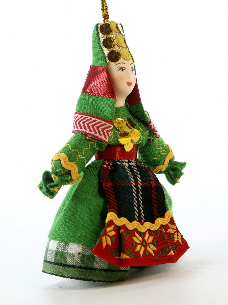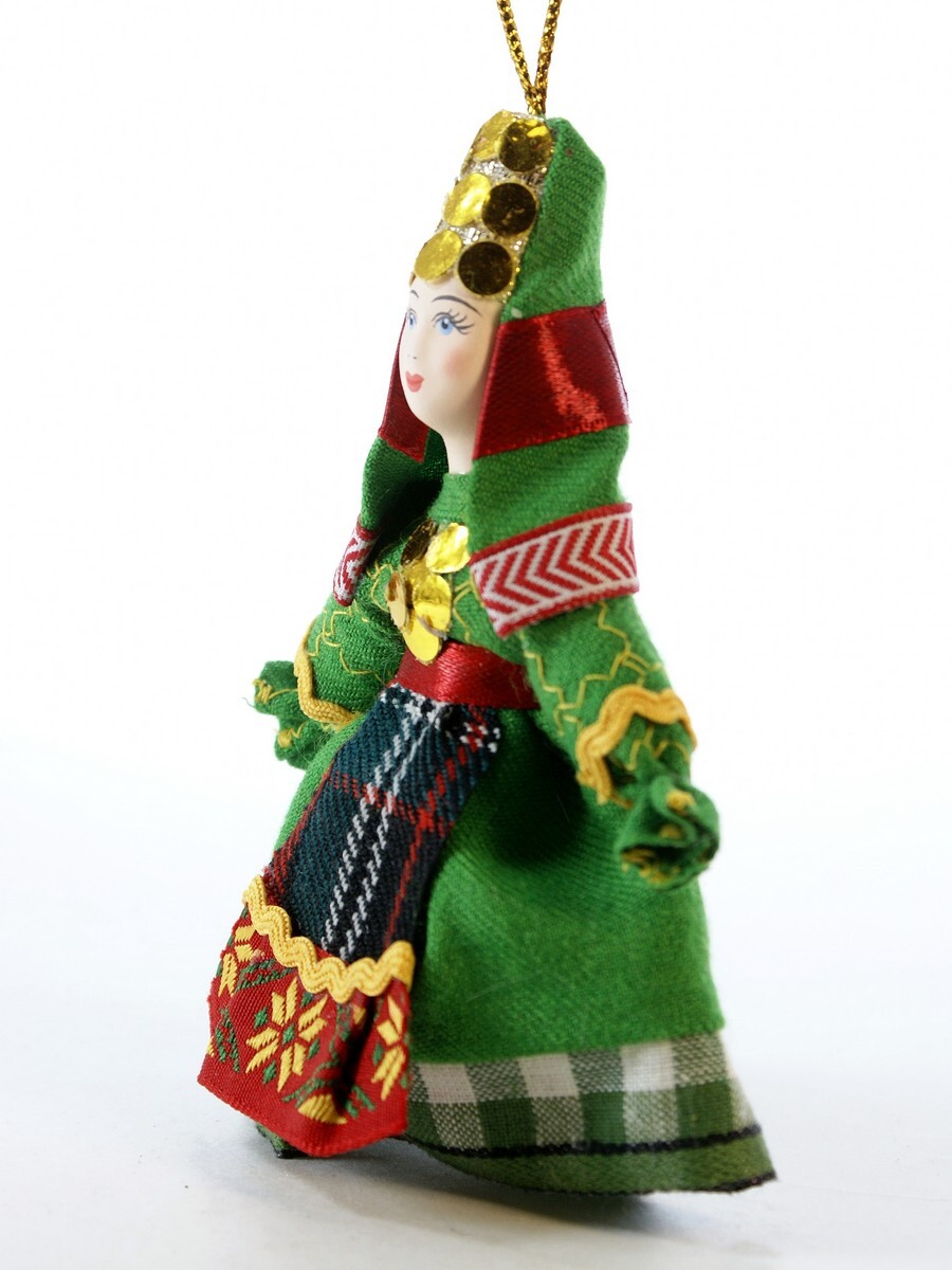 Кукла-подвеска Потешного промысла Удмуртка.\n\nМатериал фарфор,текстиль. Высота 11 см. Артикул 1314.