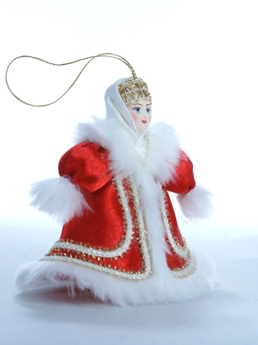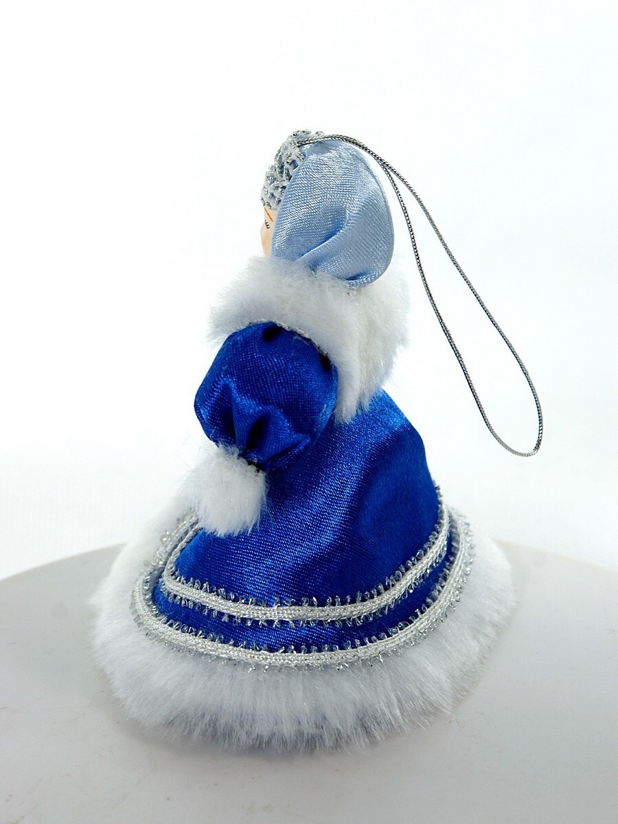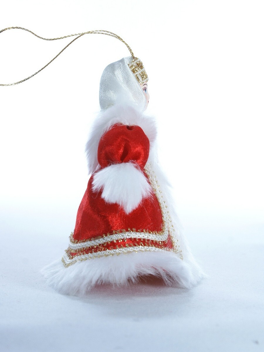 Кукла-подвеска Потешного промысла в зимнем девичьем костюме. Фарфор, текстиль. Высота 10 см. Артикул 0957.