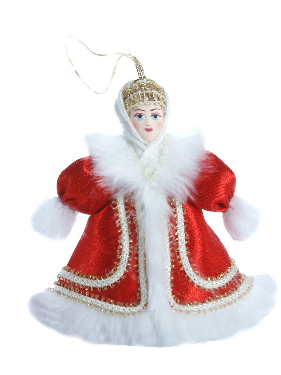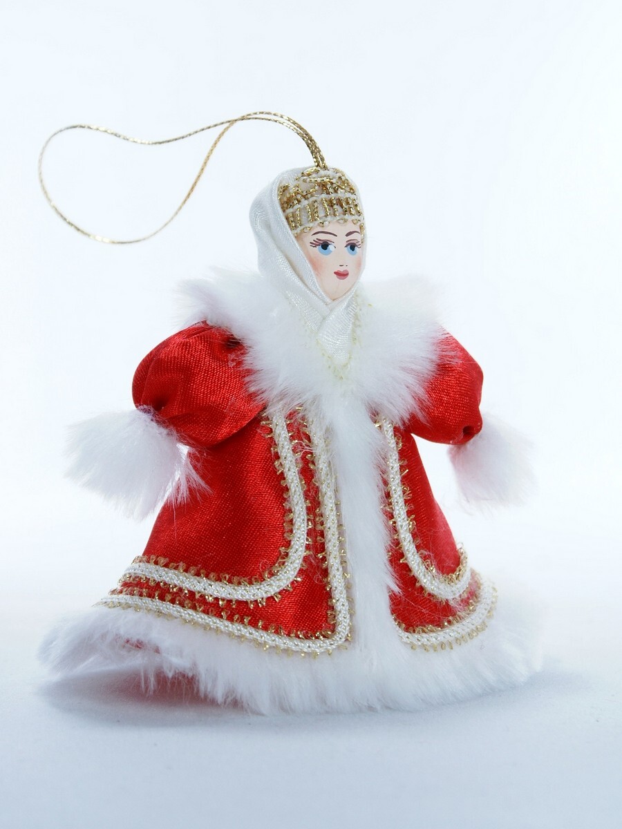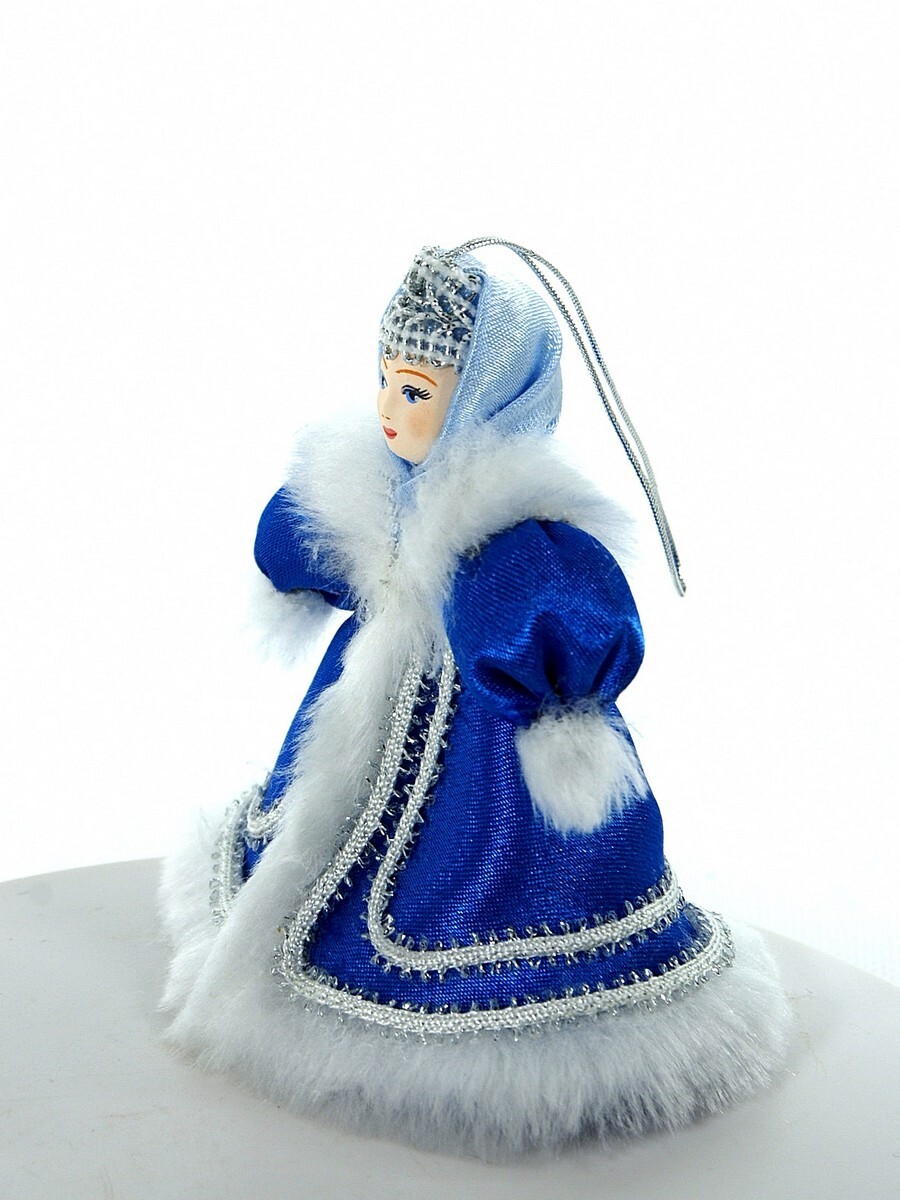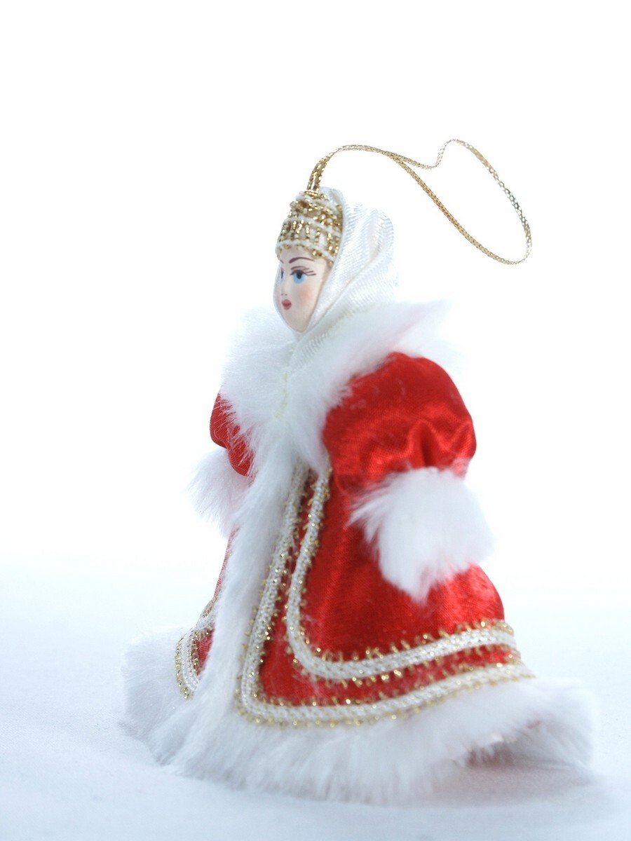 Кукла-подвеска Потешного промысла в зимнем девичьем костюме. Фарфор, текстиль. Высота 10 см. Артикул 0957.