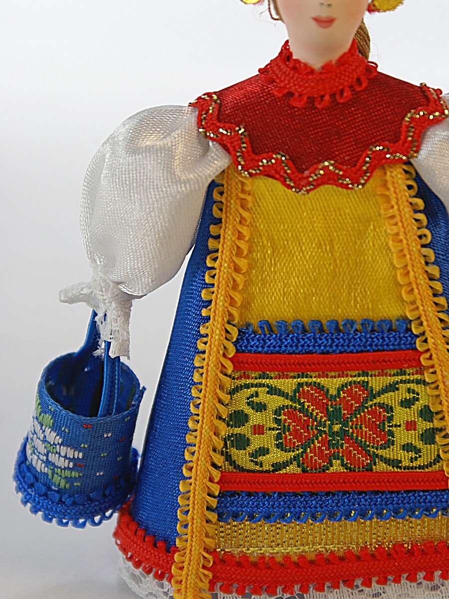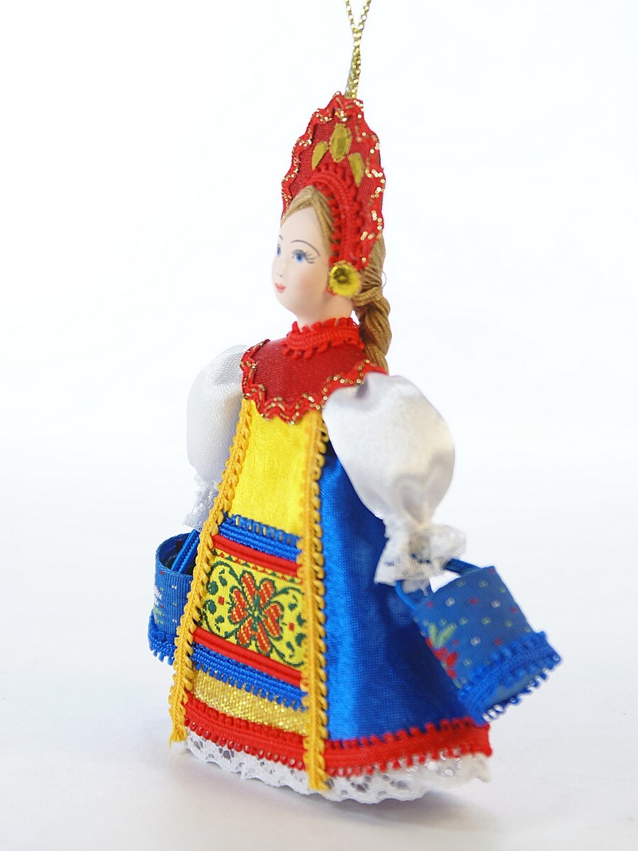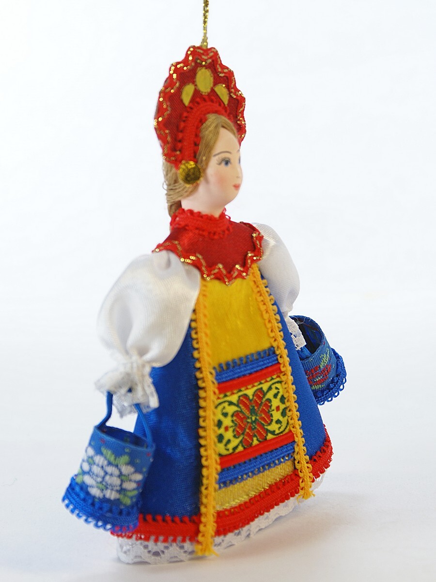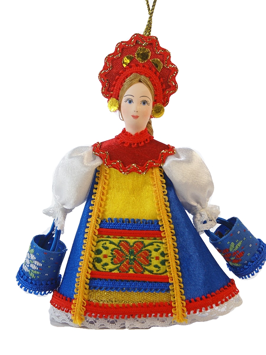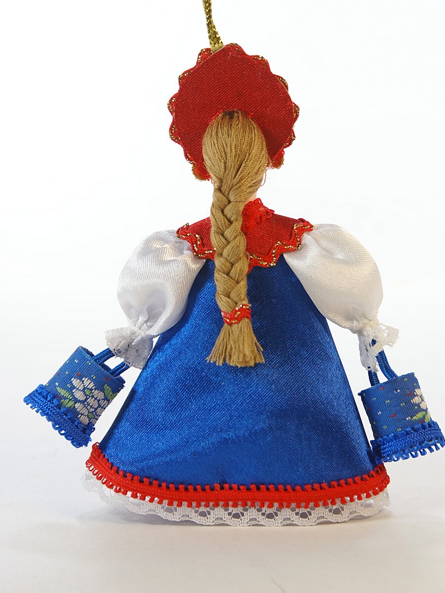 Кукла-подвеска Потешного промысла Водоноска. Материал фарфор, текстиль. Высота 13 см. Артикул 0729.