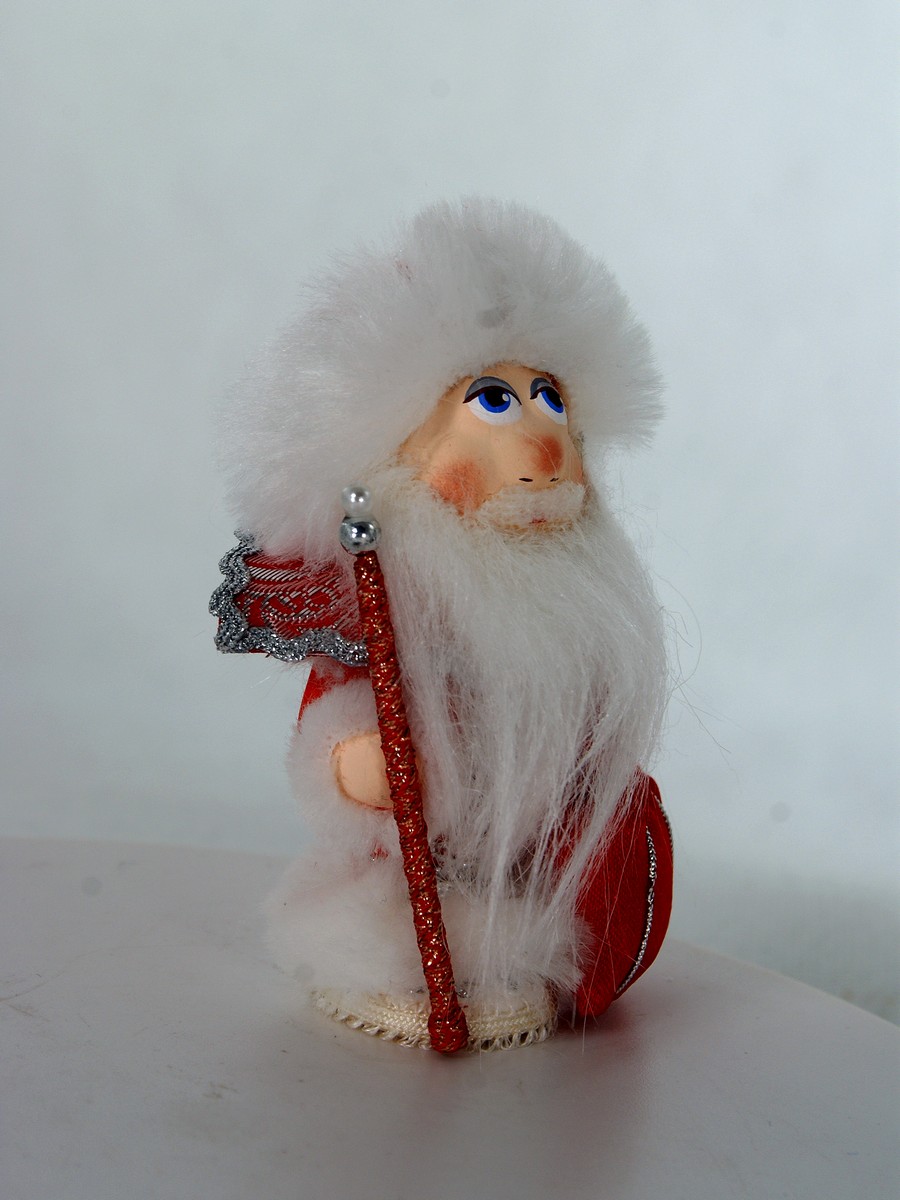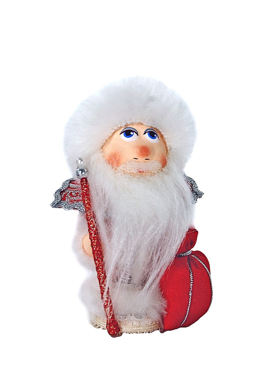 Кукла-потешка Потешного промысла Дед мороз. Игрушка фарфоровая ручной работы. Новогодний подарок. Материал фарфор, текстиль. Высота 11 см. Артикул 2344. Кукла интерьерная ручной работы из коллекции Потешки. Для подарка, для интерьера, в коллекцию. на елку.