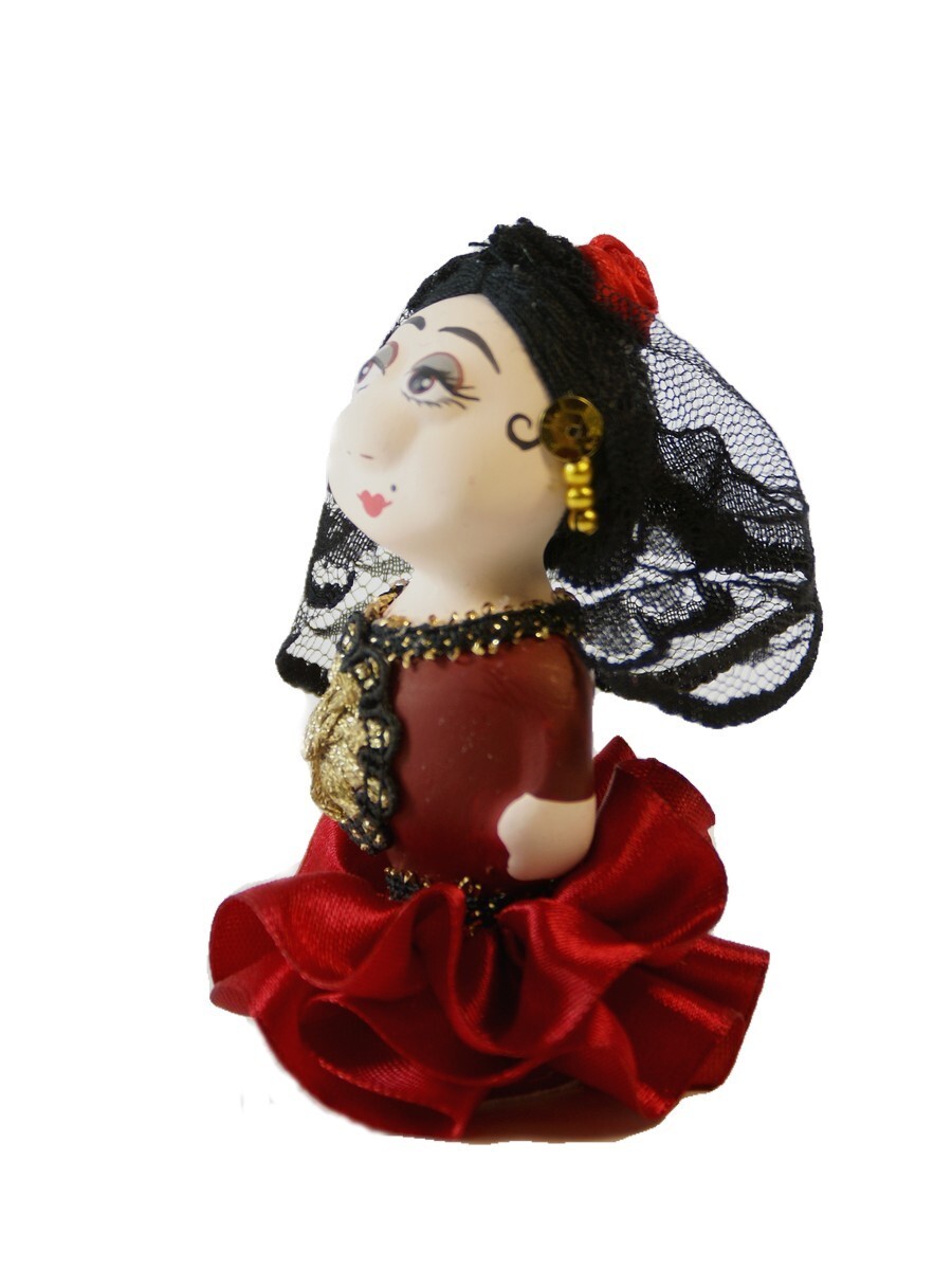 Кукла-потешка Потешного промысла Испаночка. Материал фарфор, текстиль. Высота 9 см. Артикул 1897.