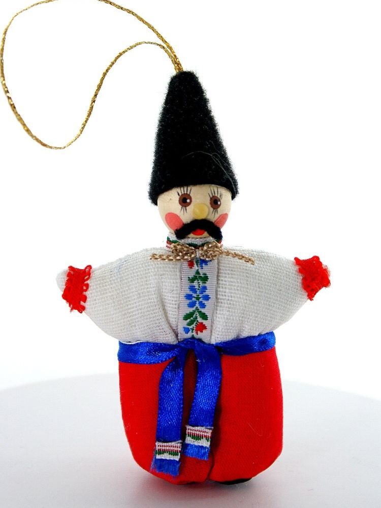 Кукла-потешка сувенирная подвесная. Украинец. Дерево, текстиль.