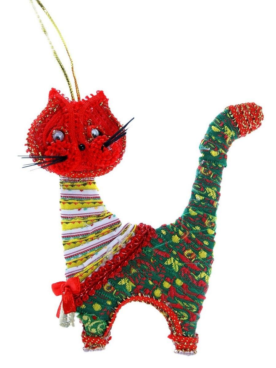 Кукла Потешного промысла Кот плоский подвесной из жаккардовой тесьмы