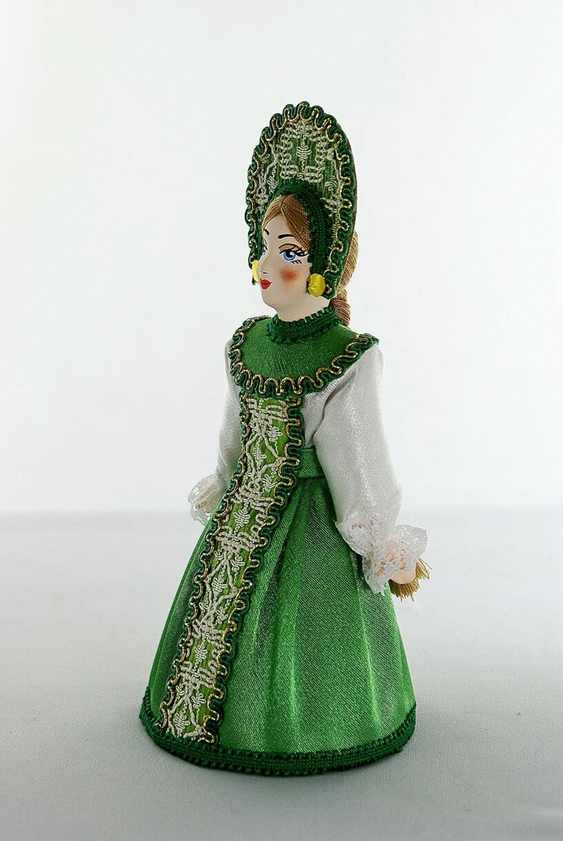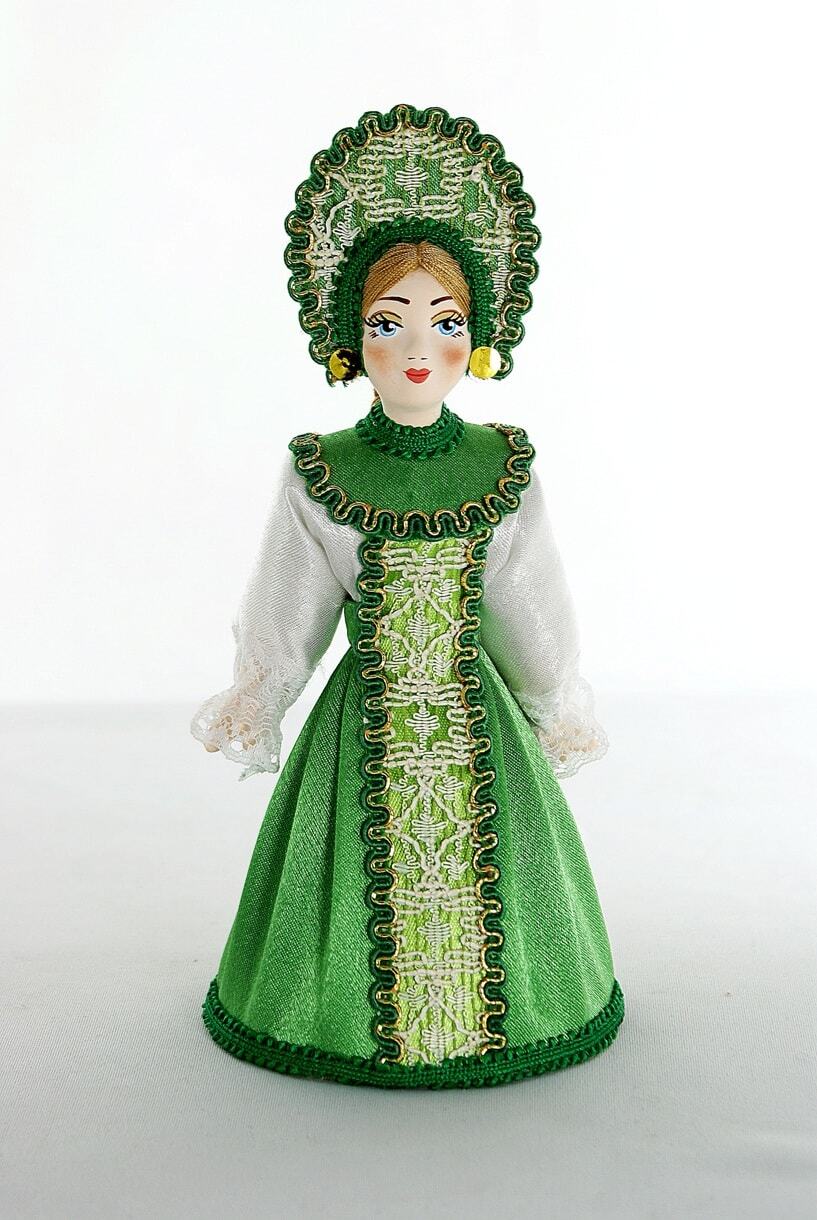 Интерьерная кукла ручной работы из коллекции Русский костюм. Для подарка, для интерьера, в коллекцию. Фарфор, текстиль. Высота 17 см.