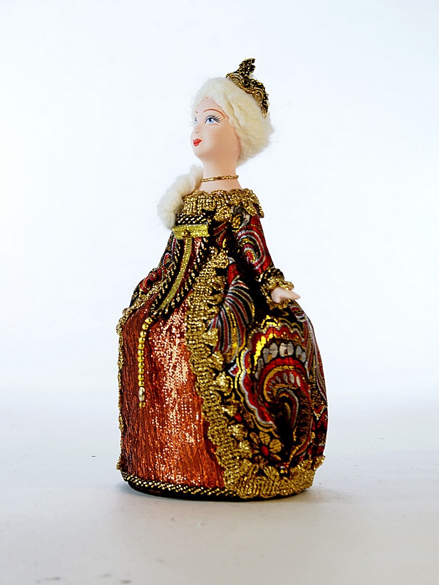 Кукла-шкатулка Потешного промысла в костюме Дамы. Материал фарфор, текстиль. Высота 19 см. Артикул 2139.