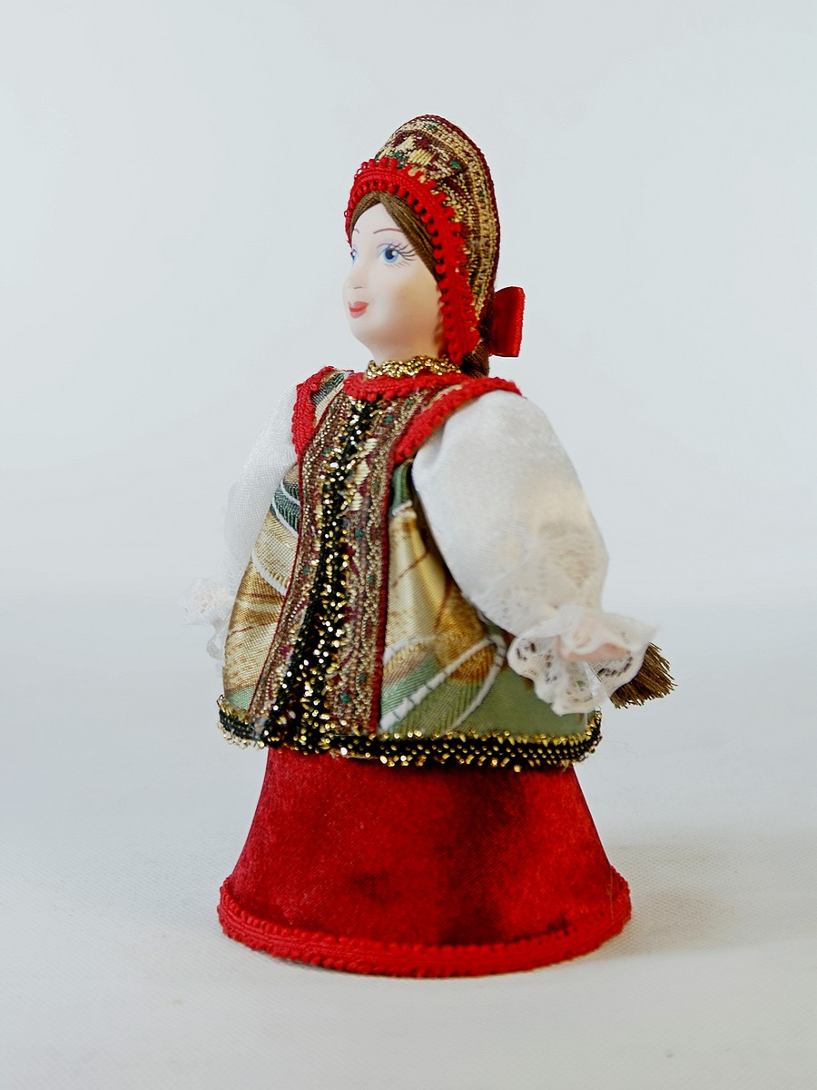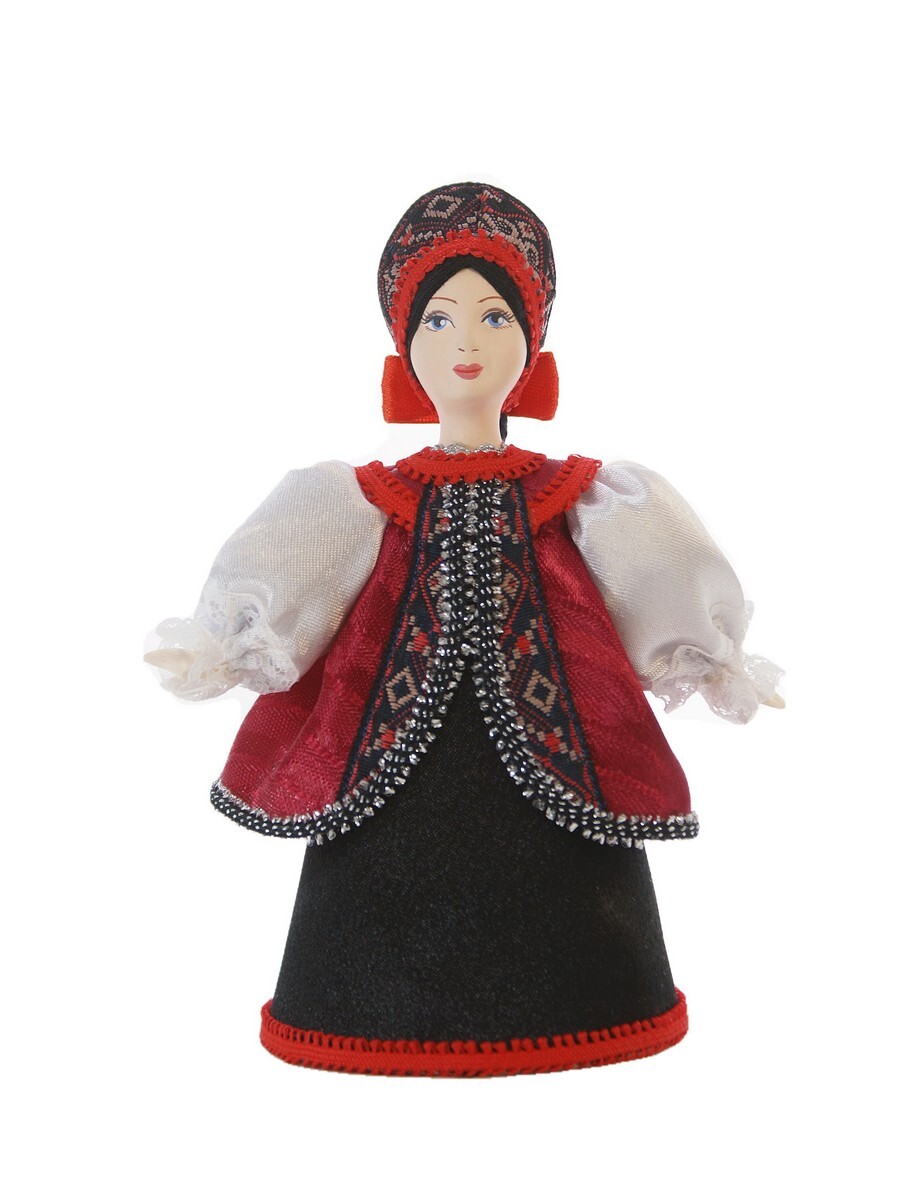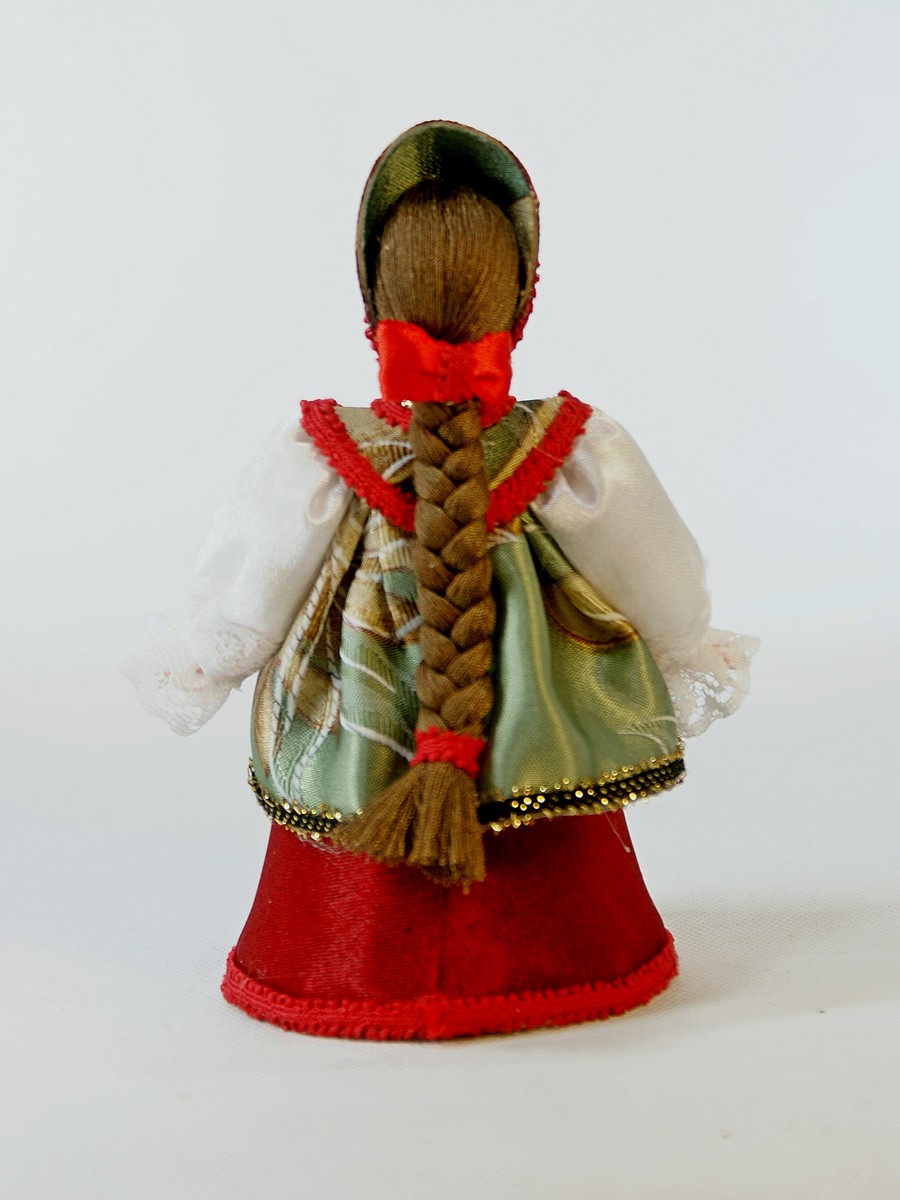 Кукла Потешного промысла девушка в русском народном костюме. Материал фарфор, текстиль. Высота 16 см. Артикул 0763.
