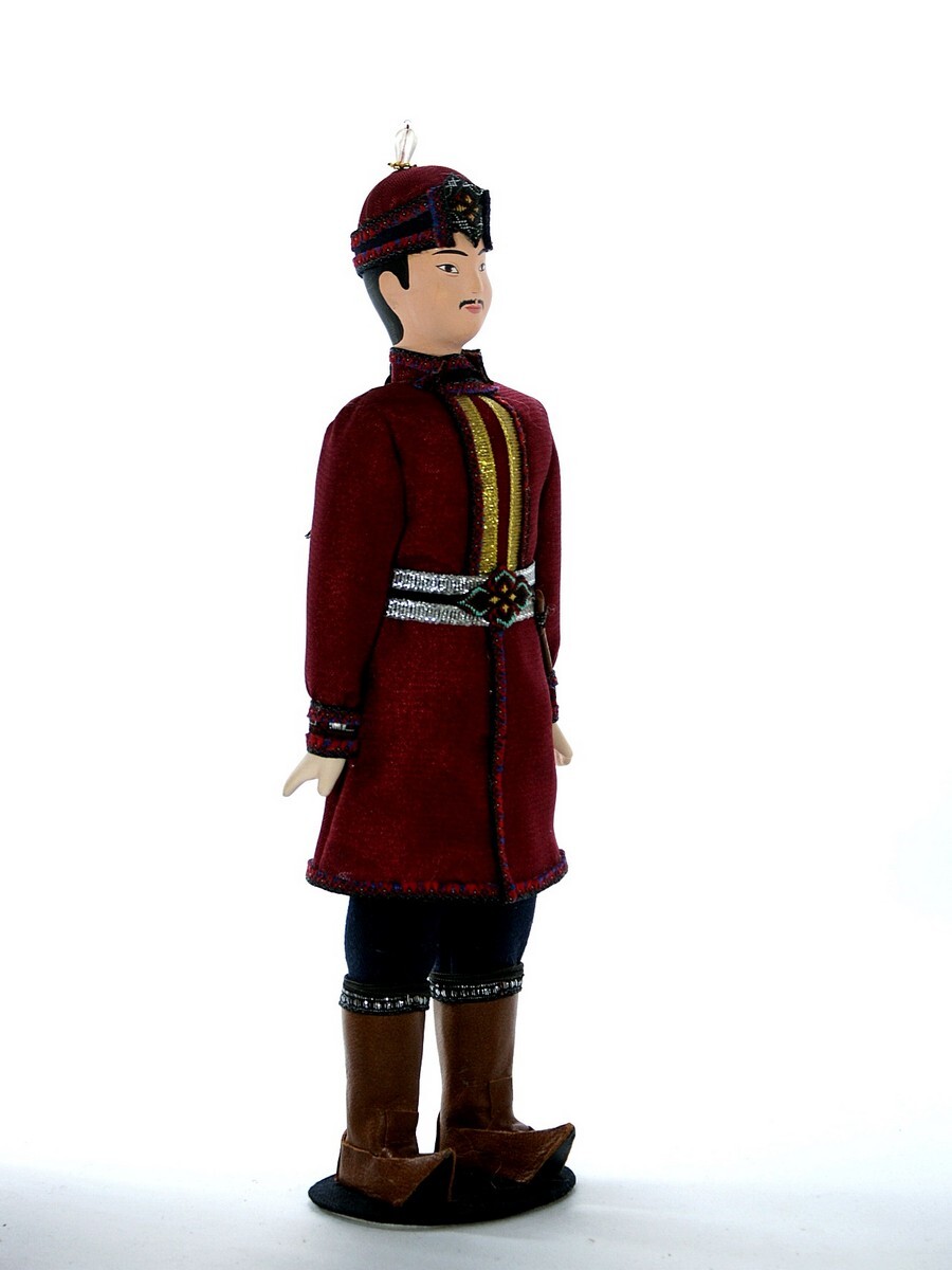 Кукла сувенирная фарфоровая. Астраханская губ. Калмыцкий праздничный мужской костюм. К.18-н.19 в.