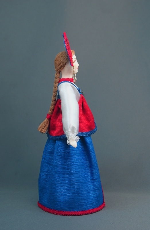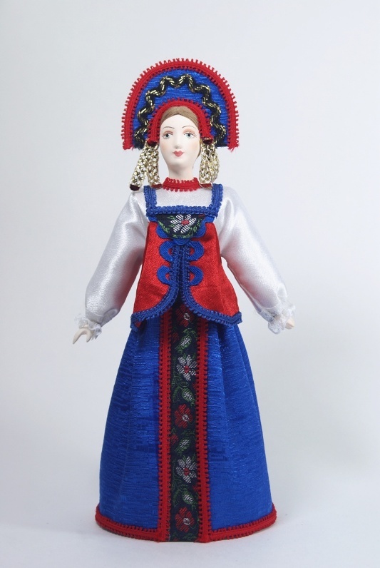 Кукла сувенирная фарфоровая. Нижегородская губ. Россия. Девичий праздничный костюм.