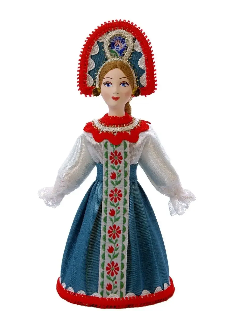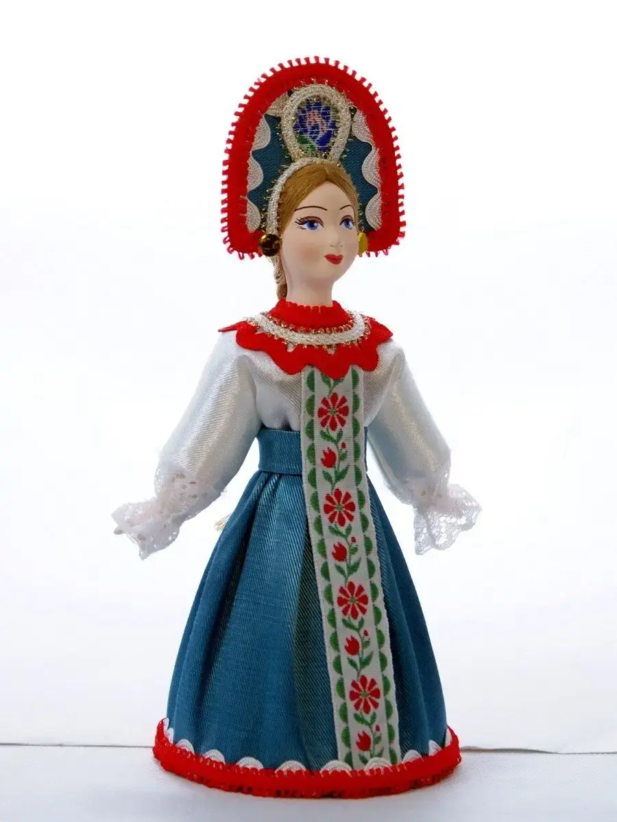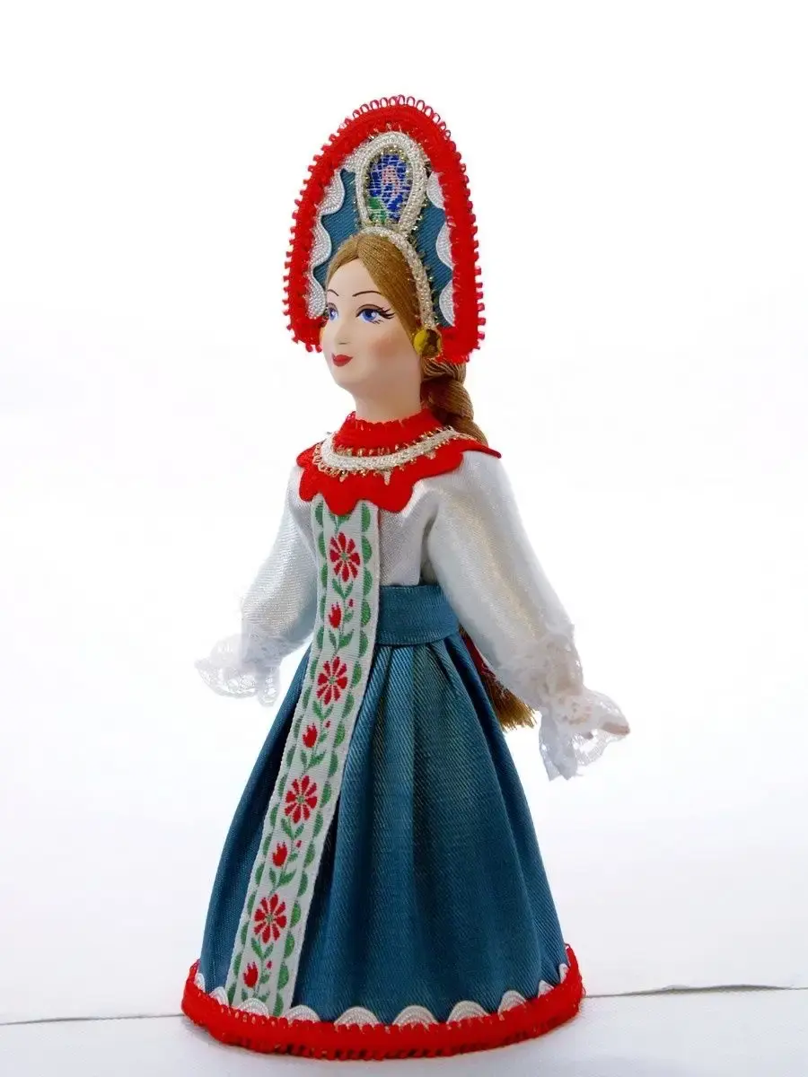 Кукла фарфоровая сувенирная коллекционная девушка в русском костюме (стилизация). Для подарка, украшения интерьера, в коллекцию.