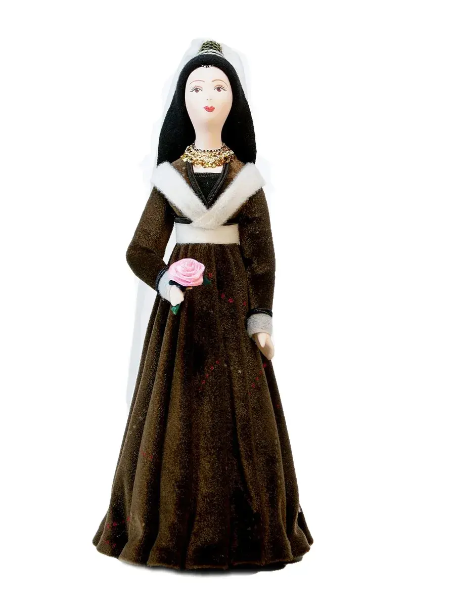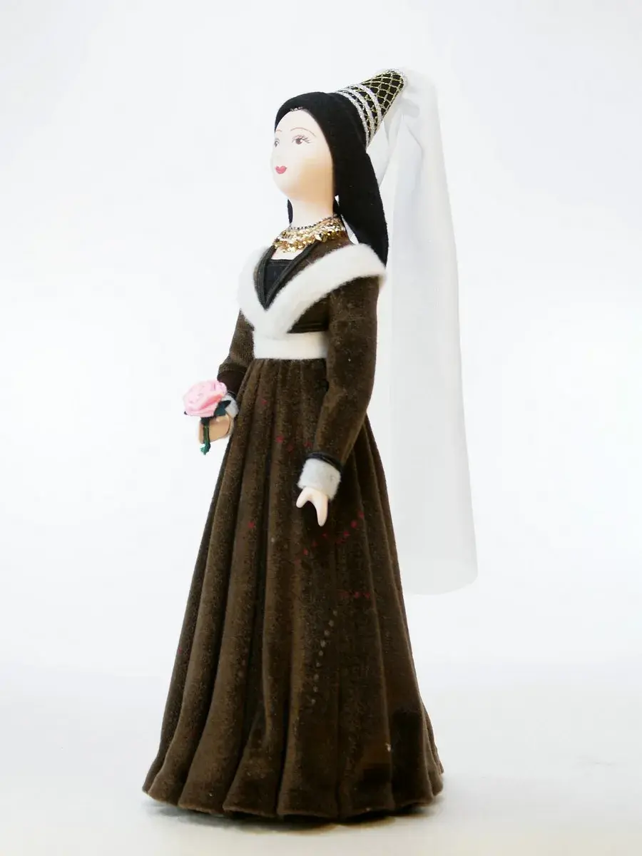 Фарфоровая коллекционная малотиражная кукла в праздничном костюме дворянки Середины 15 века, Бургундия, Французы. Сделана в Санкт-Петербурге мастерами предприятия народных художественных промыслов «Потешный промысел». Ручная работа.