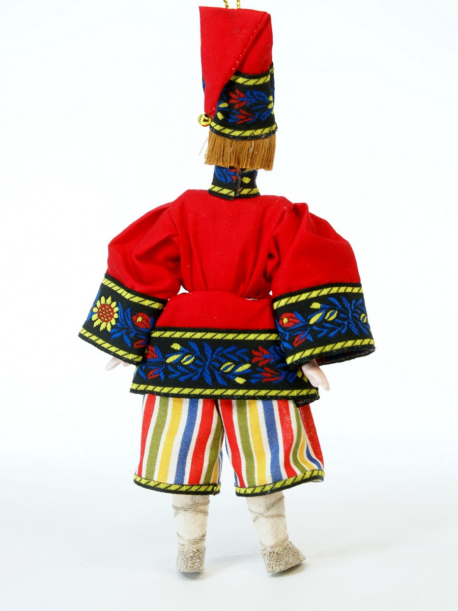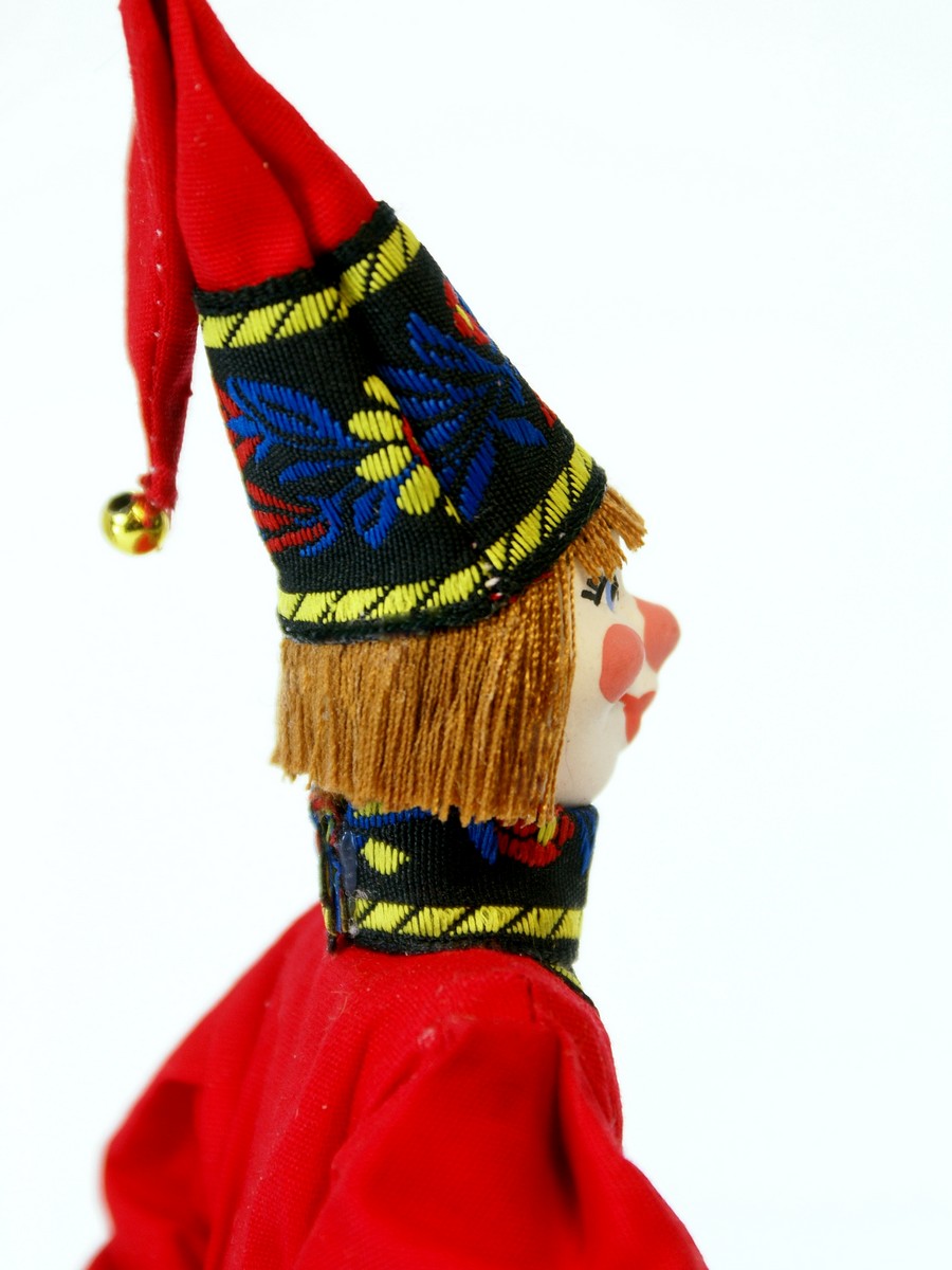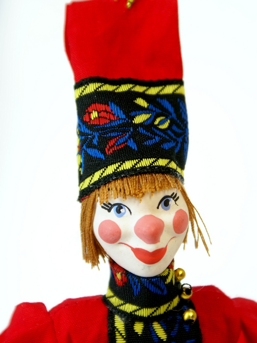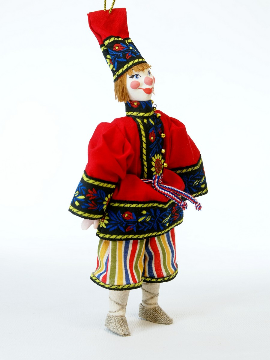 Персонаж народного театра. Россия.\n\nКукла интерьерная ручной работы из коллекции Подвески. Для подарка, для интерьера, в коллекцию. Фарфор, текстиль. Высота 19 см.