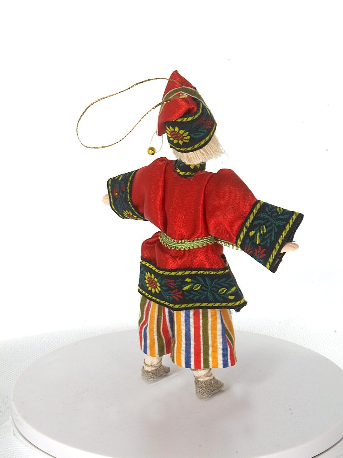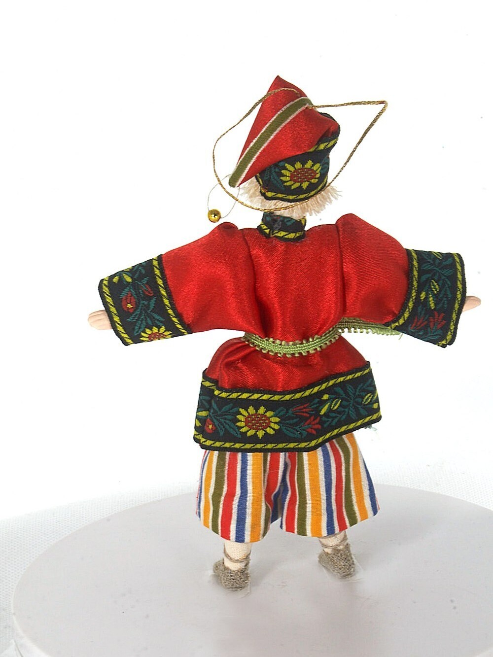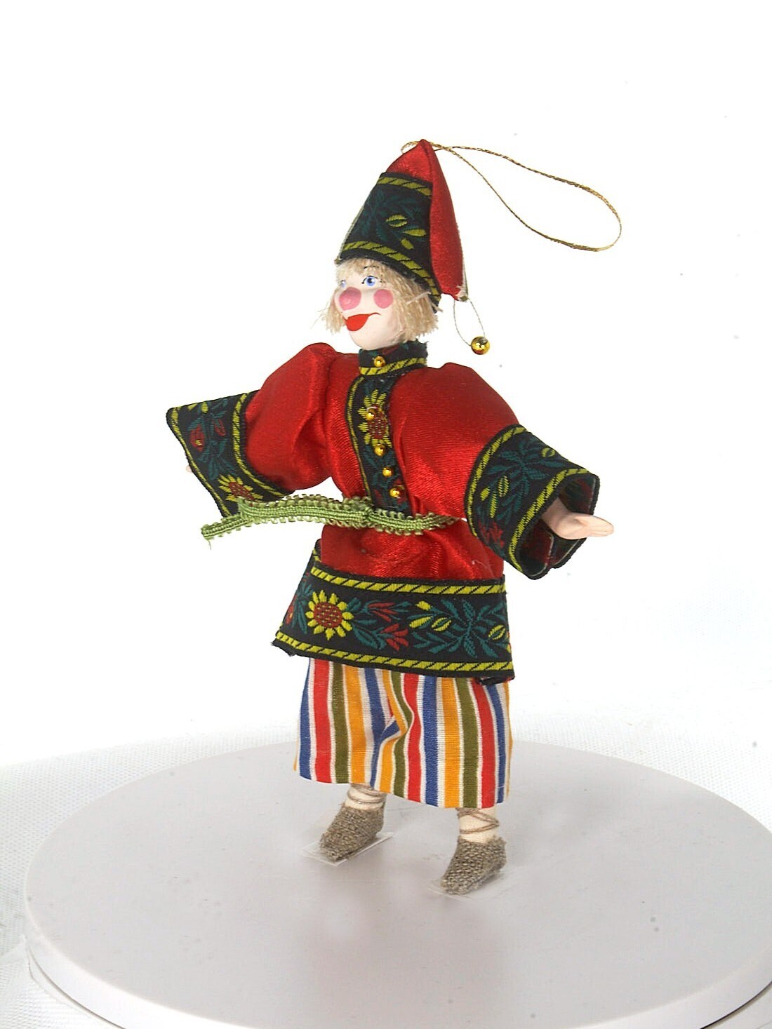 Подвесная фарфоровая кукла Петрушка - персонаж русского народного театра. Сувенир ручной работы