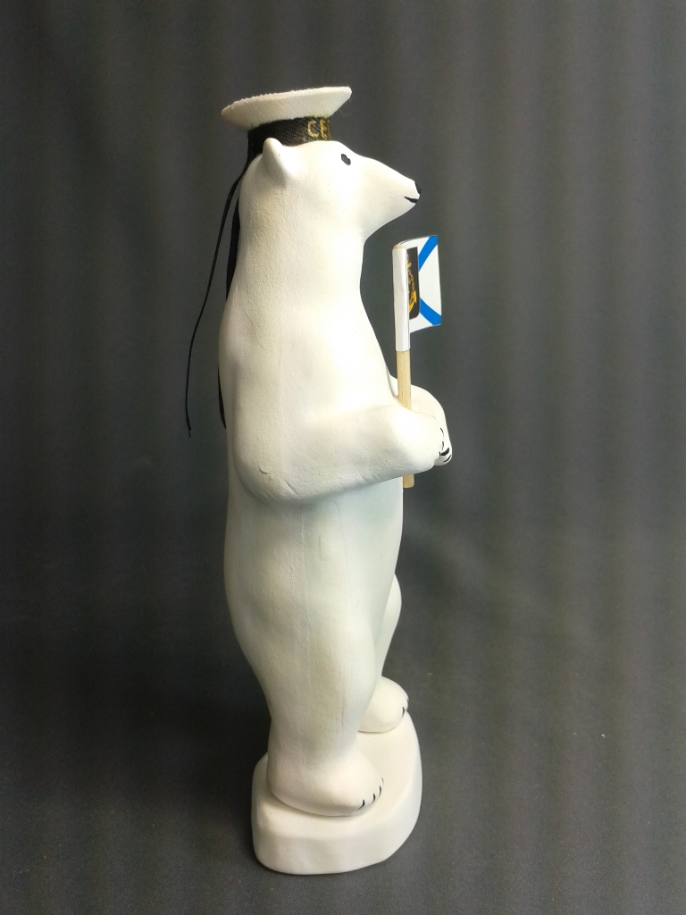Сувенир фарфоровый Белый медведь на льдине с флажком в бескозырке. Высота 17 см. Артикул 2258.
