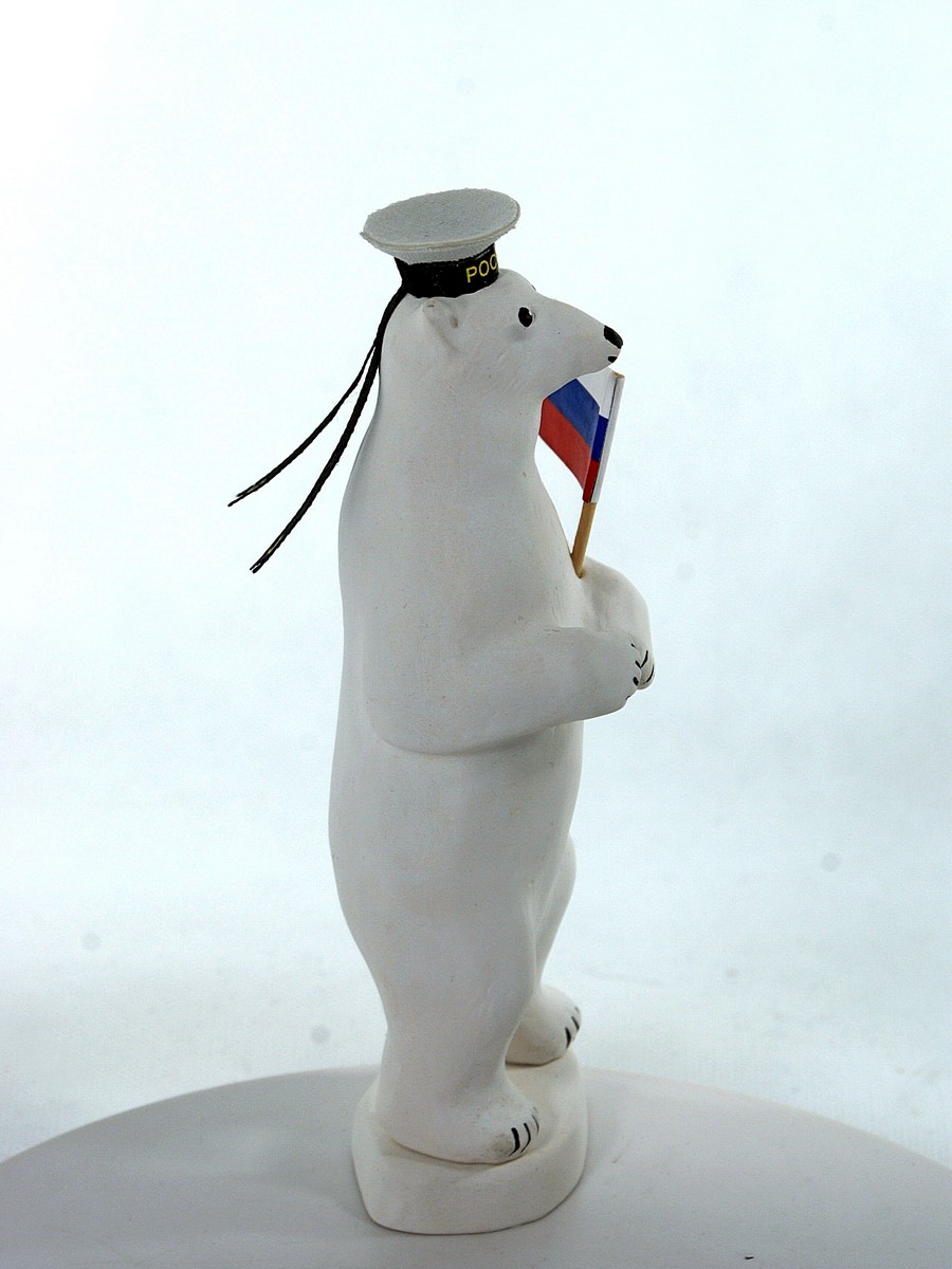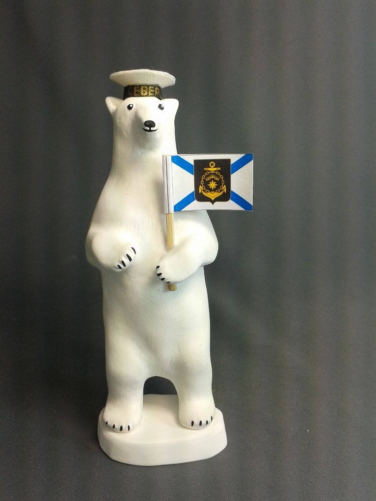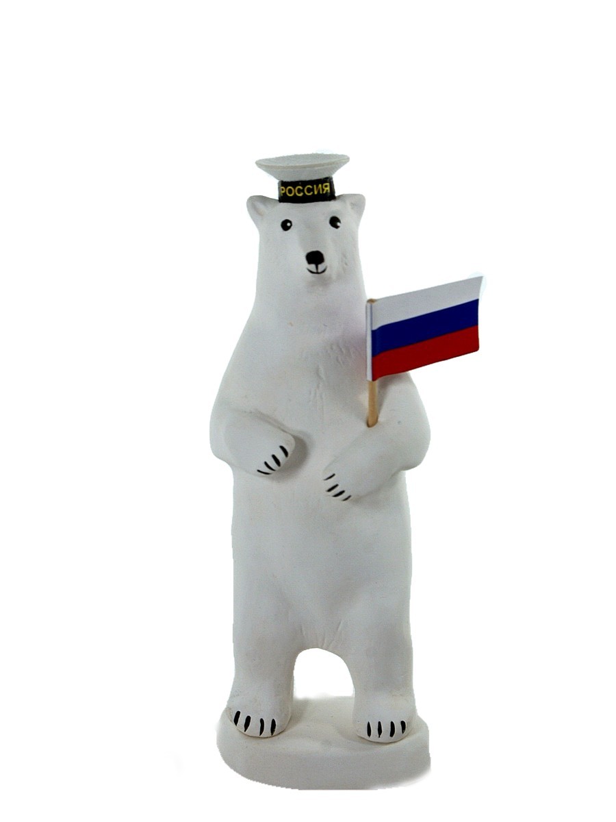 Сувенир Белый медведь на льдине с флажком в бескозырке